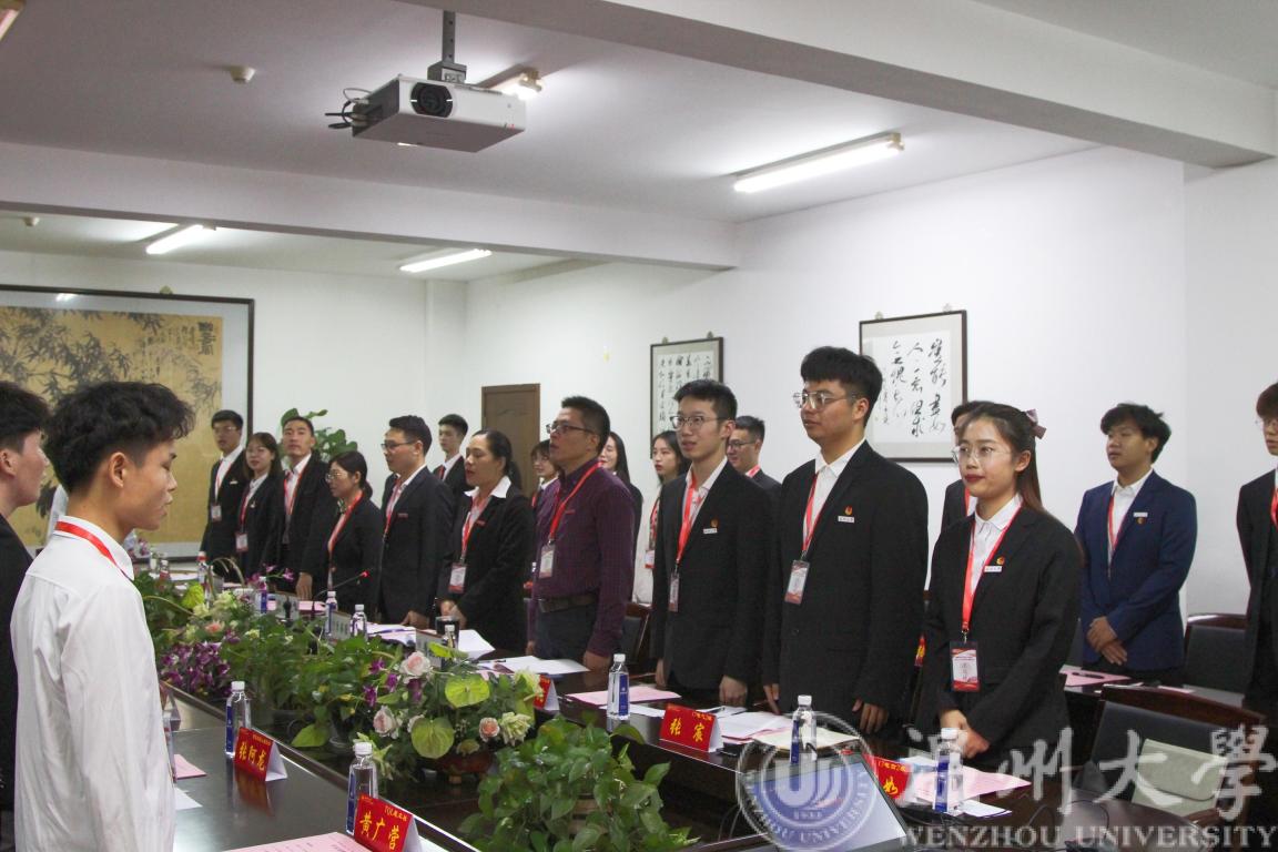 晚上18:30,大会正式开始。辅导员潘龙飞向在场学生代表逐一介绍出席本次会议的领导和老师,代表们报以热烈的掌声与崇高的敬意。
