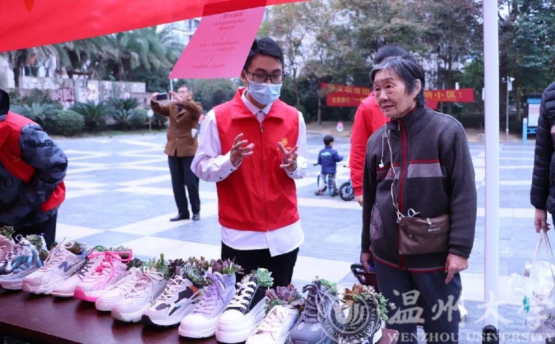 本次活动的鞋子都来源于企业赠送的废弃的样品鞋,同学们DIY后种上漂亮的多肉植物,得到了居民朋友们的喜欢,在活动结束之后志愿者们留下了一张珍贵的合影。