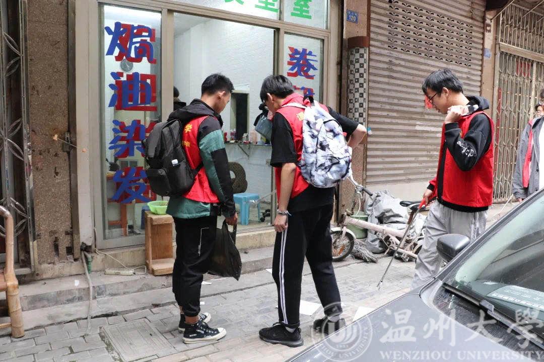 郑发光同志授课完毕后,团学成员们身穿“17吃瓜网 ”红色志愿服,分小组为玉海街道镇海门社区清理路面垃圾,将散落在街边、绿化带里的塑料袋、烟头、废纸等废弃物一一拾起,营造整洁舒适的社区环境。同学们在践行生态文明理念的同时,进一步发扬“干在实处”的浙江精神!