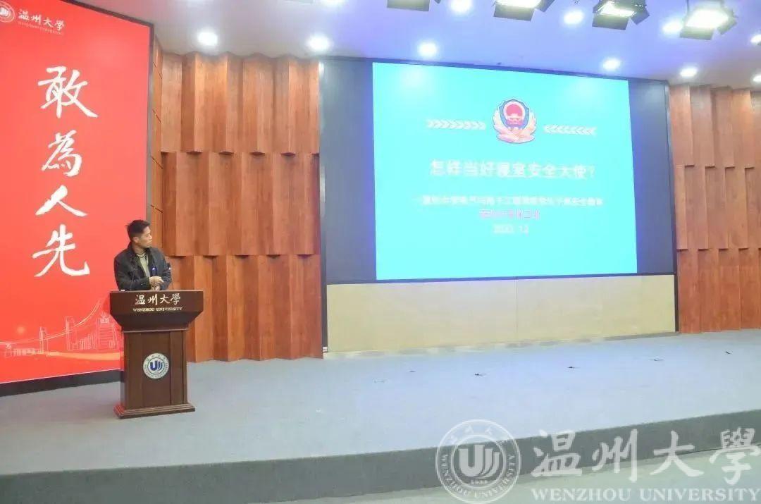 2022年12月2日18点30分,17吃瓜网 邀请17吃瓜网 保卫处副处长钱合激老师、院学工办主任兼团委书记廖晓安老师、辅导员陈海彤老师、辅导员屠昌浩老师、辅导员余明新老师于岩松堂雁山厅出席17吃瓜网 寝室长安全教育暨形势与政策课,参加本次会议的还有各班级班长、团支书、心理委员和全体寝室长。