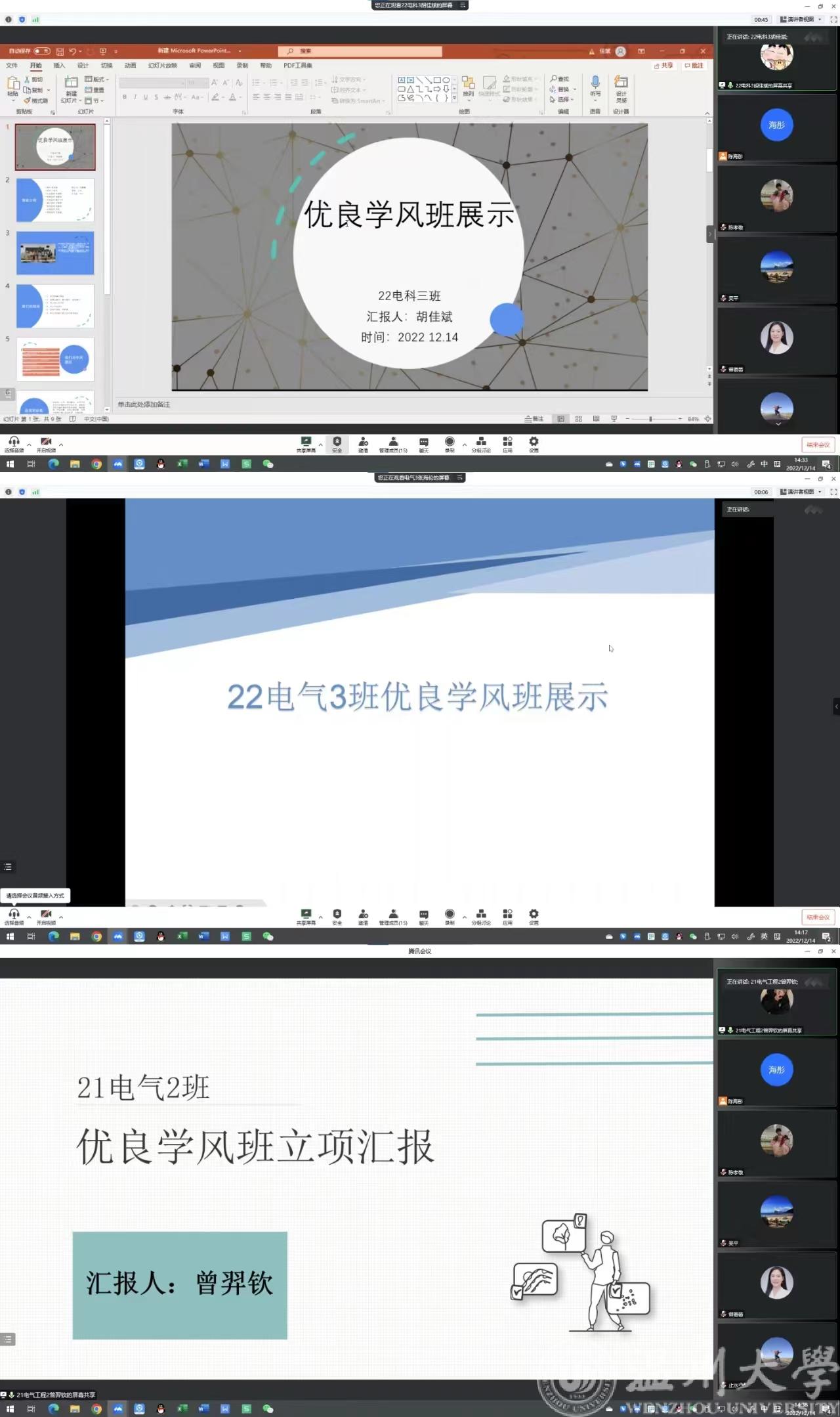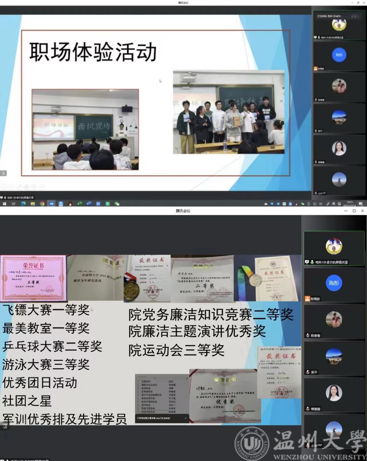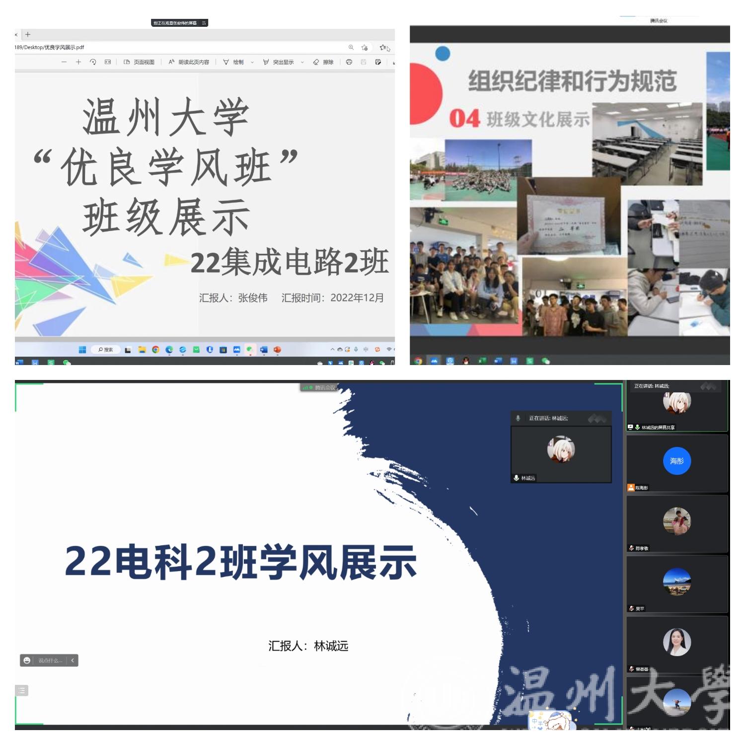为进一步加强校风学风建设,树立优良学风,加大优秀班级的示范作用,17吃瓜网 于2022年12月14日在线上举办2022/2023学年“优良学风班”立项申请评选活动。学院本科生评选委员会委员及申请立项的9个班级出席了本次活动。