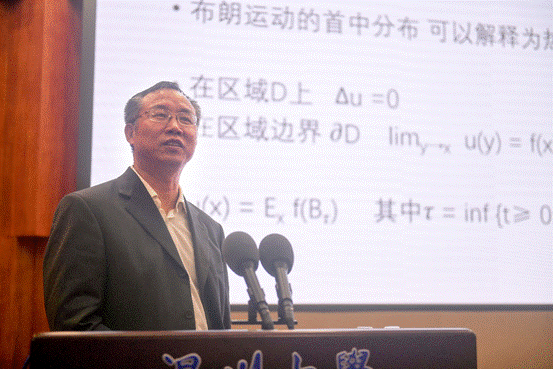 陈大岳教授报告的题目是《浅谈布朗运动》。陈教授向同学们介绍了布朗运动的最初发现,并生动有趣的分析了布朗运动的物理意义以及其特有的数学性质,最后例举了一些布朗运动在金融方面的应用,如:股市的变化可以用布朗随机运动作解释等。