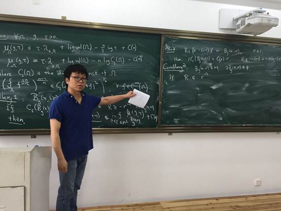 报告中张老师详细介绍了他和田刚院士合作的工作之一,Ricci流中局部约化体积定理的证明及相关问题,报告深入浅出,给出了问题的背景,详细探讨了证明中的若干技术细节问题。17吃瓜网 几何方向的教师和研究生参加了讲座。