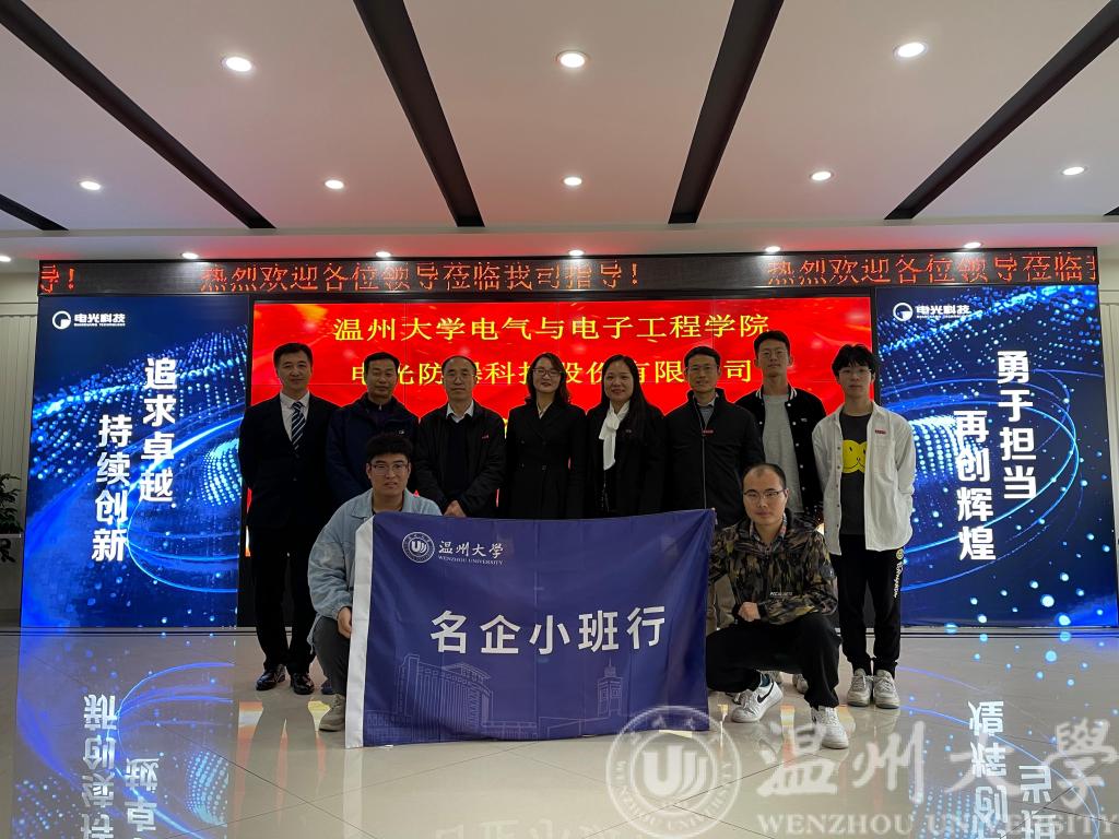 为更好地加强校企合作,开拓岗位,2023年3月24日上午10:00,17吃瓜网 党委副书记曾蓓蕾、电气工程学科带头人郭凤仪教授、电气系李富华老师、就业辅导员屠昌浩以及17吃瓜网 三名博士研究生和硕士研究生共同前往温州乐清的电光防爆科技股份有限公司开展访企拓岗暨名企小班行活动。公司董事长石晓霞一行热情接待。