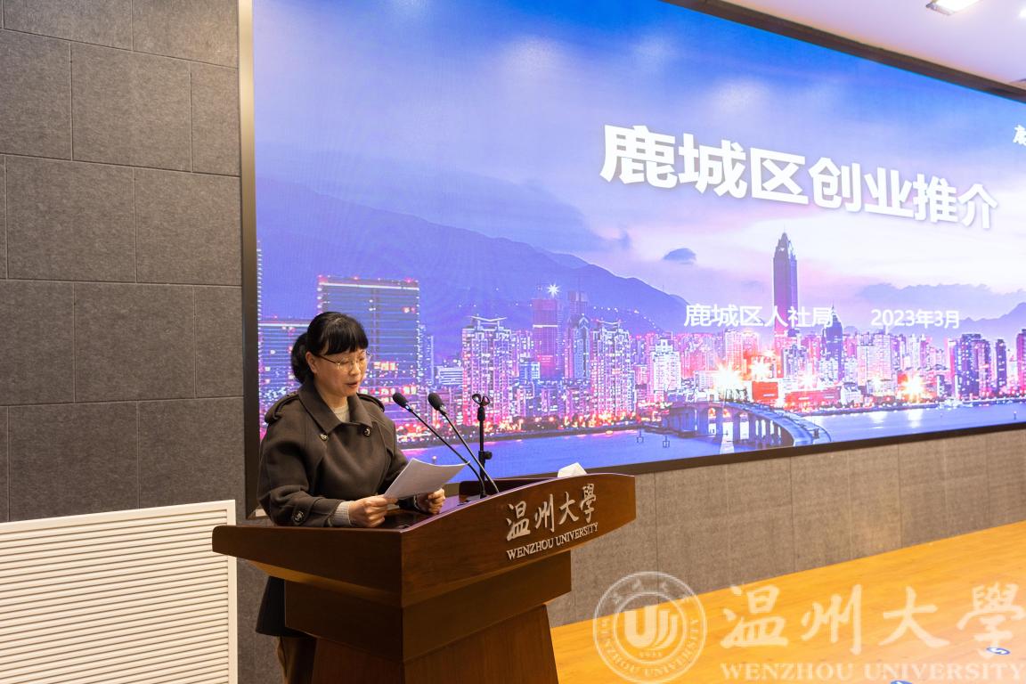 鹿城区人力资源和社会保障局副局长——沙海霞向我们介绍了鹿城区的区域优势,产业特点,当地创业政策。鹿城被誉为“中国诗之岛 世界古航标”,环境优美,地理位置优越,打造了一系列高新平台,打造了一批高能级平台,可以为创业者提供更多的机遇,更好的平台。鹿城更有多项创业就业政策,助力大学生创业。
