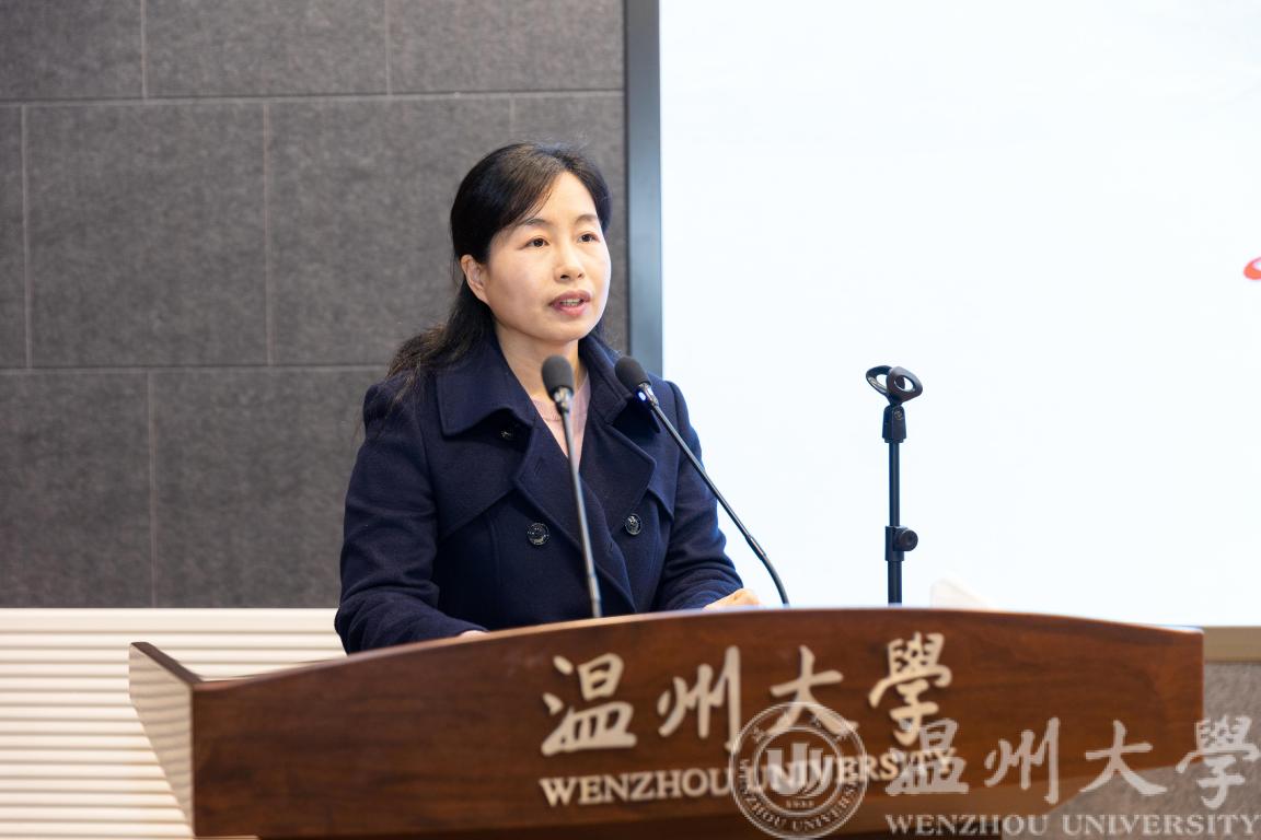 温州市教育局高教处——潘乐慧副处长宣讲在校大学生创新创业政策,潘处长对于大学生为什么要创业,有哪些创新创业的企业等问题做出了详细的回答,并对温州市对大学生创业的政策进行了讲解。