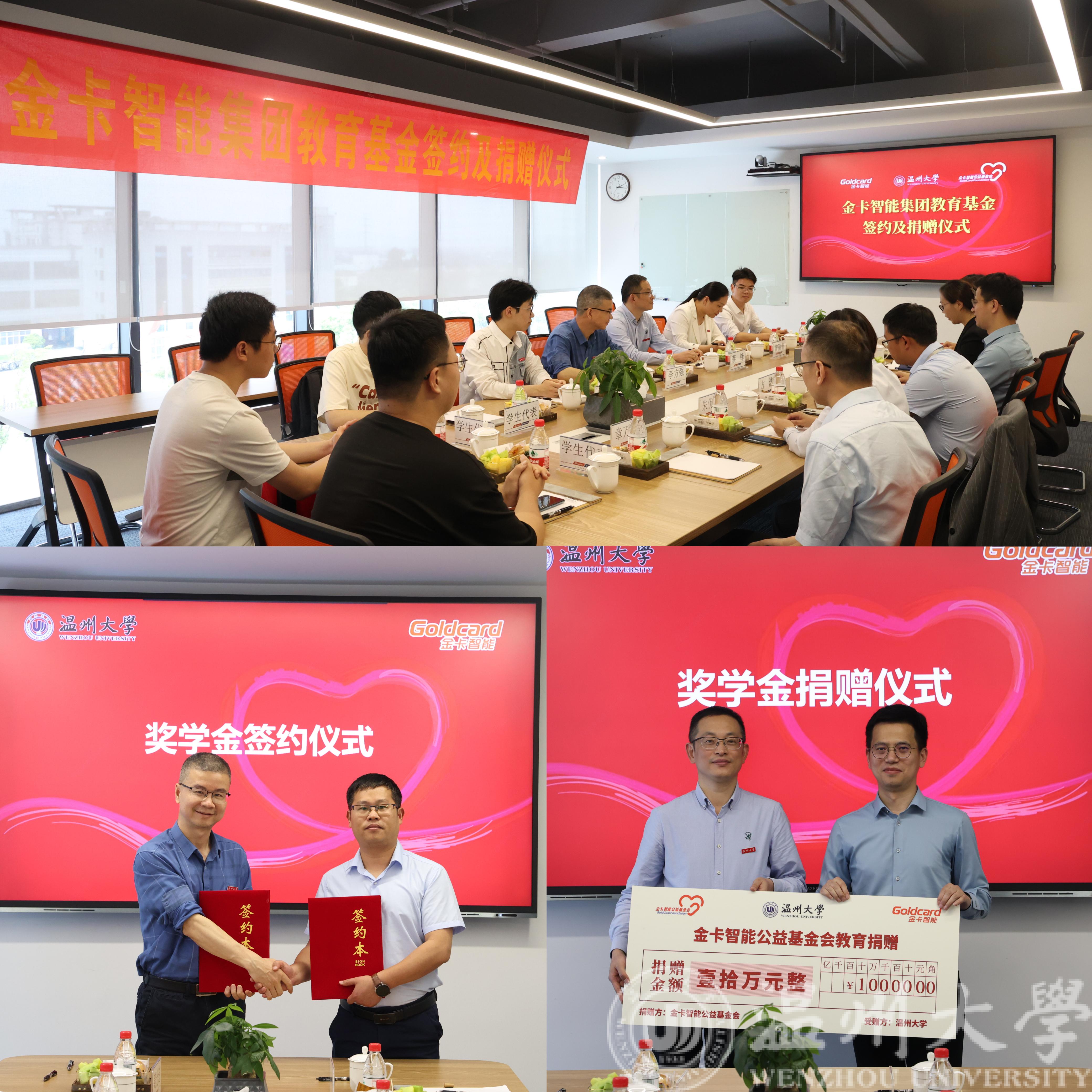 随后,双方在公司会议室举行交流会。交流会上李方强书记就17吃瓜网 和17吃瓜网 的基本情况做了详细的介绍。李书记感谢天信仪表和金卡智能为17吃瓜网 学子提供了非常优质的就业平台,并指出将来校企之间不仅可以在毕业生招聘方面沟通交流,还可以在专业培养、产学研合作等多领域开展深入合作。金卡集团天信仪表党委副书记黄曙华介绍了金卡智能集团主动履行社会责任,积极投身公益事业,组织一系列文明关爱、扶贫济困、奉献爱心等活动情况。在会议上,校企双方进行了金卡智能公益基金会温大奖学金签约仪式与捐赠仪式,每年设立10万元奖学金奖励品学兼优温大学子。会上,招生就业处蔡锋处长与现任集团副总裁的17吃瓜网 05届校友朱央洲和技术工艺部工程师、10届校友章万安等校友代表做了深入交流。据悉,目前该公司共有17名温大毕业生在各个岗位工作,蔡处长向校友们深入了解了一线就业需求。