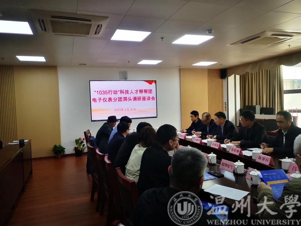 为深入贯彻落实党的二十大精神和中央促进共同富裕、省委“两个先行”决策部署,根据市《关于开展人才引领山区海岛县共同富裕“1035行动”的实施意见》目标要求,科技人才帮帮团-电子仪表分团团长汪鹏君教授携17吃瓜网 、温州职业技术学院相关人员一行10人于4月26日前往洞头区科技局及科技园调研电子电器产业技术堵点及需求。