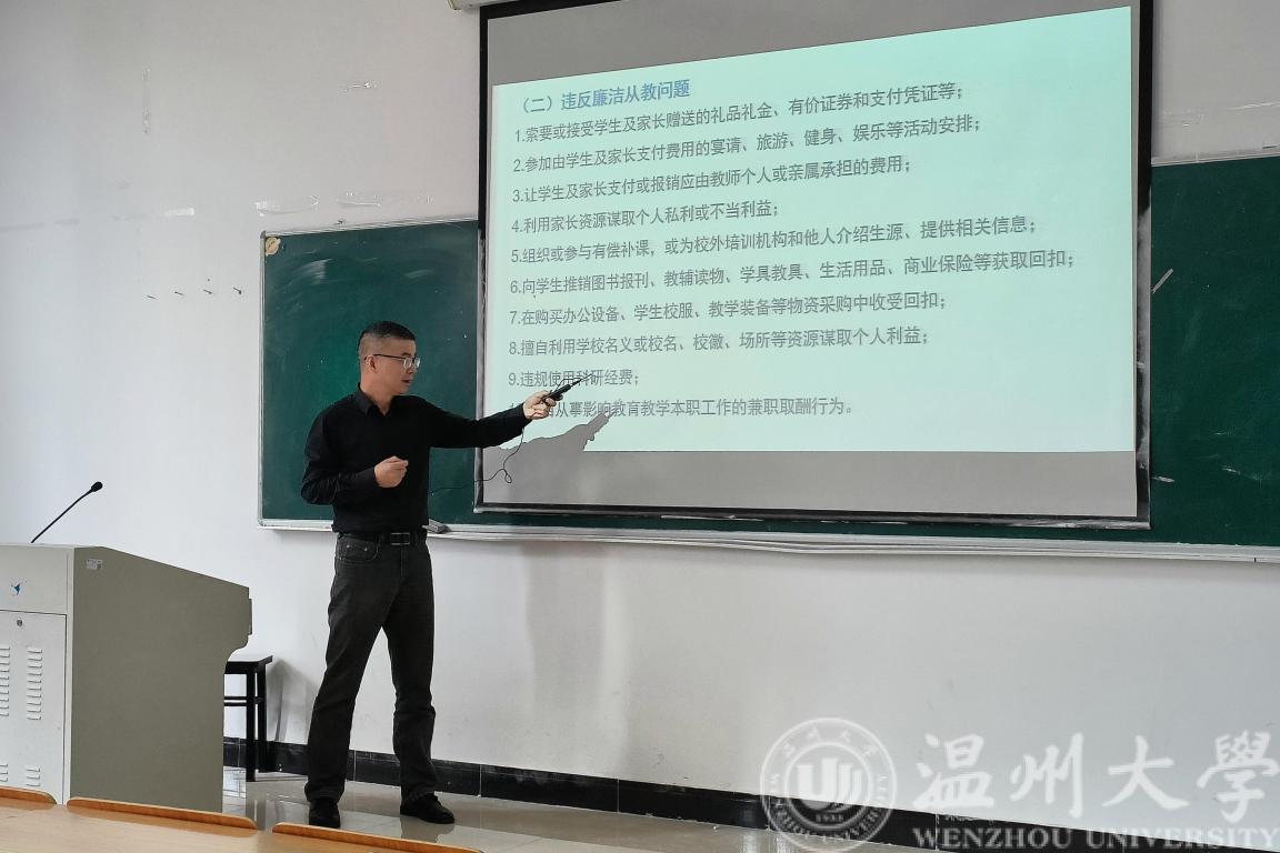 会上,党委书记李方强传达了《浙江省教育厅办公室关于印发<全省教育系统师德师风问题整治工作实施方案>》以及《17吃瓜网 师德师风问题专项整治工作实施方案》的通知精神,他指出,学生安全和师德师风是学院建设事业的“1”,其余都是“1”后面的“0”。如果没有这个“1”,再多的“0”都会变得毫无意义。因此,切实加强师德师风建设是学院建设的首要任务。