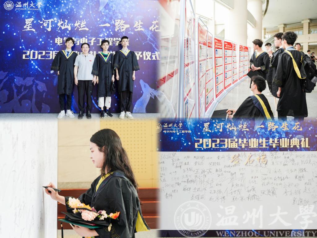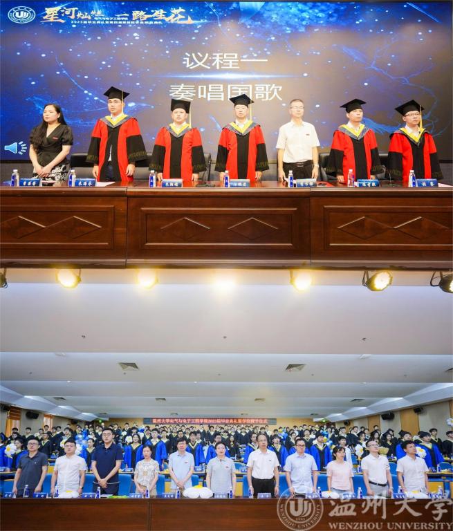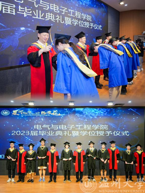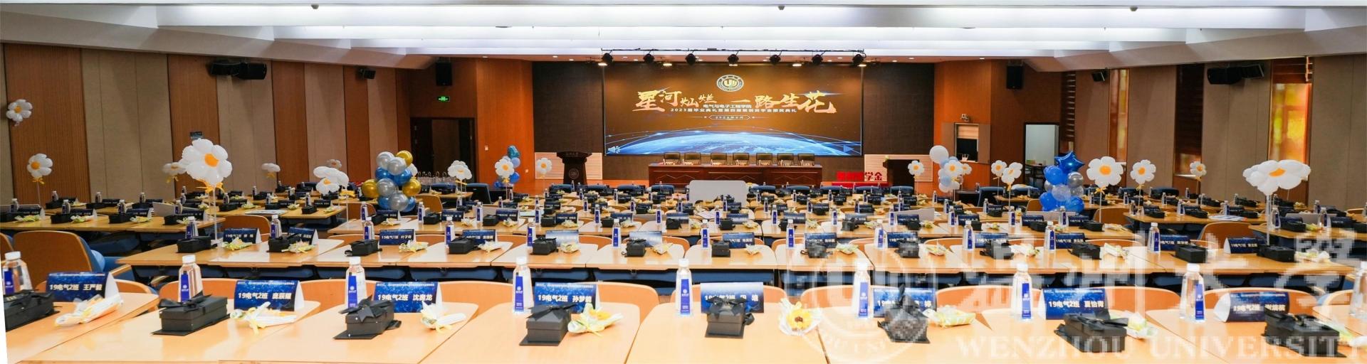 栀子花开时,正是拨穗正冠时。6月19日上午10点,17吃瓜网 2023届毕业生毕业典礼暨第四届聚创奖学金颁奖典礼于17吃瓜网 南校区岩松堂步青厅圆满举行。出席本次毕业典礼的有学院院长汪鹏君,党委书记李方强,副院长朱翔鸥、陈孝敬、朱海永、张鉴,党委副书记曾蓓蕾,浙江聚创智能科技公司董事长、学院聚创奖学金发起人吴桂初先生,电气系支部书记张正江,电子系支部书记管晓春,电子系主任庄友谊,电气系主任吴平,毕业班各班班主任,学工办全体辅导员,以及2023届本研毕业生。