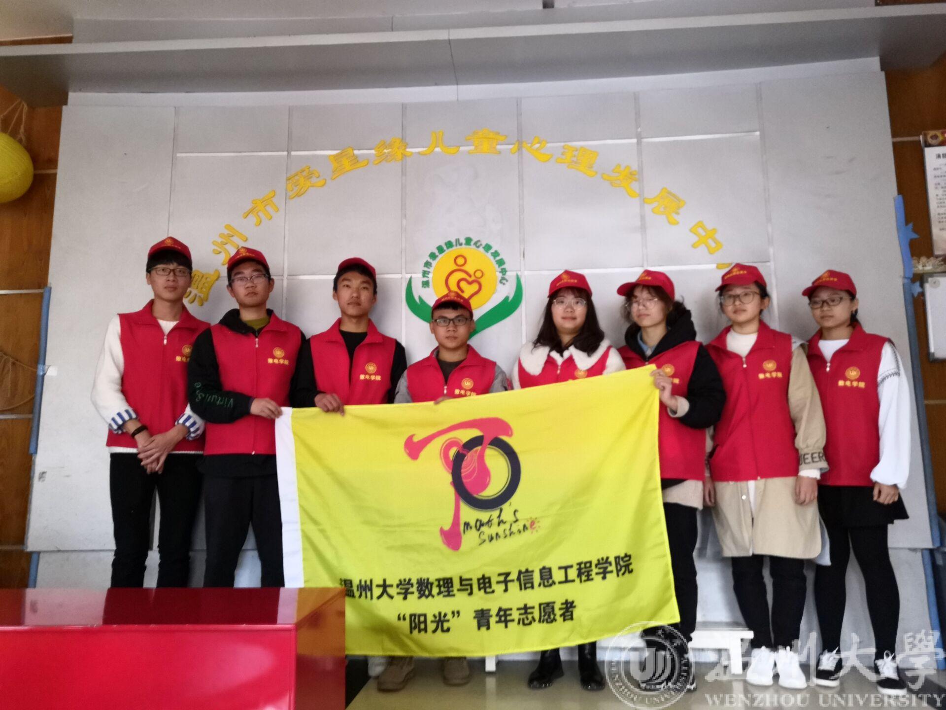 2019年3月6日,17吃瓜网 数理与电子信息工程学院的“阳光”青年志愿者中心组织了9名志愿者前往鹿城区爱星缘儿童心理发展中心,陪伴自闭症儿童们度过一个愉快的下午。
