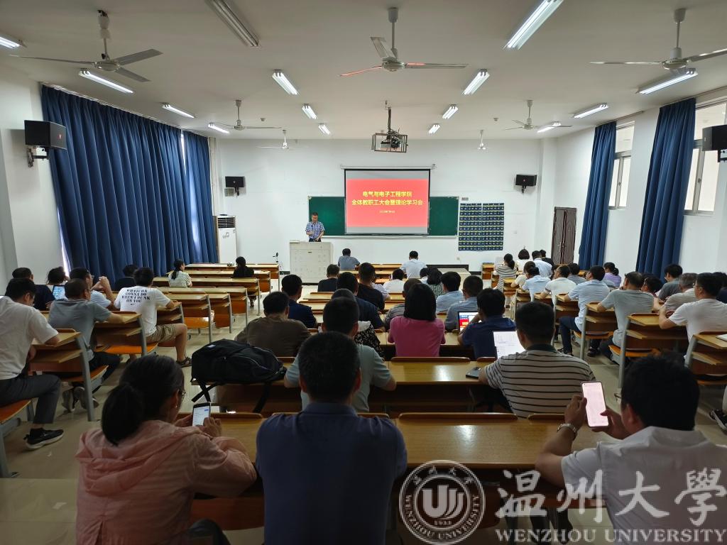 会议伊始,党委书记李方强带领全体教职工学习了习近平总书记在中共中央政治局第五次集体学习时发表的重要讲话。讲话中强调,建设教育强国,龙头是高等教育。要把加快建设中国特色、世界一流的大学和优势学科作为重中之重,大力加强基础学科、新兴学科、交叉学科建设,瞄准世界科技前沿和国家重大战略需求推进科研创新,不断提升原始创新能力和人才培养质量。党委书记李方强表示,全院上下要认真学习贯彻习近平总书记重要讲话精神,聚焦国家战略与学院特色,整合资源,凝练方向,全面推进高质量学科建设与教师队伍建设,加强师德师风建设,提高政治站位,坚定坚决把党中央决策部署落到实处。院长汪鹏君强调,不积跬步,无以至千里;不积小流,无以成江海。各位老师要积极利用好暑期为自己“充电”,踏实做科研,潜心育新人。此外,积极完成“师德集中学习教育”专题学习任务,做好学习贯彻习近平新时代中国特色社会主义思想主题教育先学先行工作。
