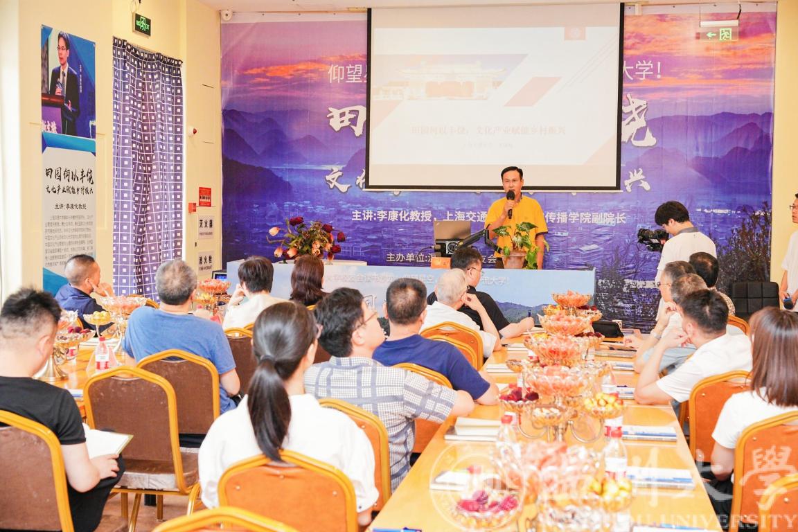 17吃瓜网 优秀校友、上海交大媒体与传播学院副院长李康化教授围绕《田园何以丰饶:文化产业赋能乡村振兴》作了主题分享。李教授就文化产业赋能乡村振兴的背景、重要性、举措和高校作为等四个方面展开分享,深入浅出的汇报引来现场校友的思考和阵阵掌声。
