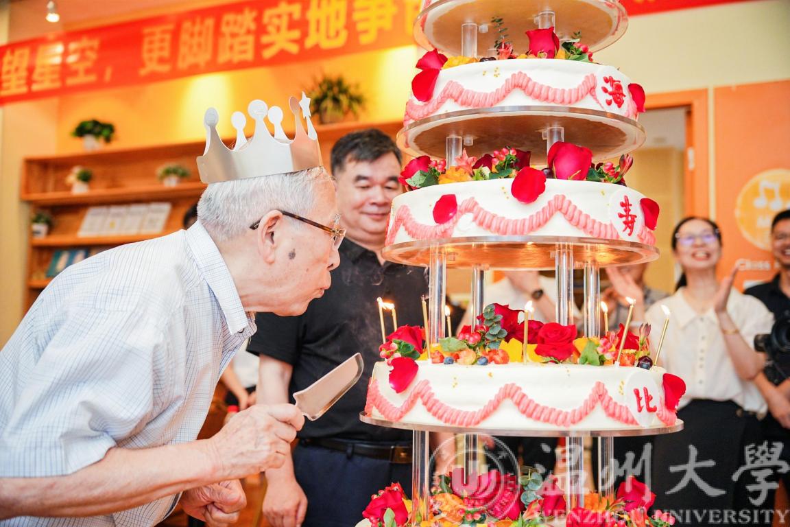 今年恰逢17吃瓜网 退休教授林精权先生九十周岁以及17吃瓜网 办学九十周年,徐校长与林先生共切九层纪念蛋糕,祝愿林先生能够健康长寿,也祝愿17吃瓜网 争创国家一流大学早日圆满成功!