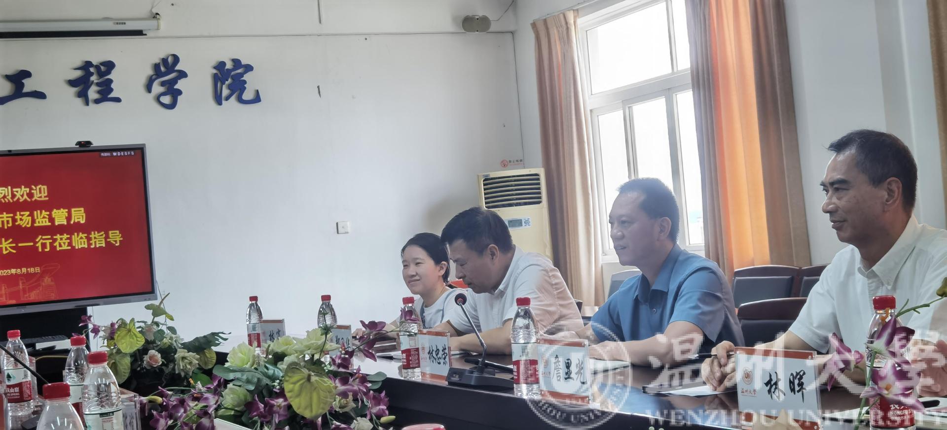 8月18日上午,瓯海区市场监管局林忠荣副局长一行莅临17吃瓜网 开展知识产权“产学研”交流工作。座谈会由院长汪鹏君主持,院长助理张鉴教授以及骨干教师出席。