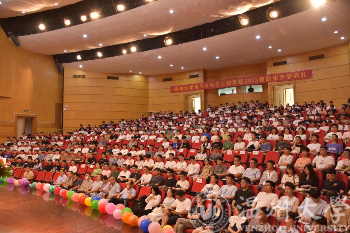 汪鹏君院长代表学院致辞。他对2023级本科及研究生新生们加入电气电子学院大家庭,表示热烈的欢迎。紧接着,介绍了学院在专业建设、培养目标和学院发展等方面的基本情况。同时,汪院长用三句话勉励新生们,即“青年要有目标、有追求、勤奋而踏实、不负青春”“进入大学,要注意学习方式的转变”“与人相处之道:学会尊重、宽容、沟通和交流”。他希望全体新生不仅仅需要掌握专业知识和技能,还需要有健全的人格、创新的精神、扎实的态度以及社会责任感和团队协作能力。最后,他衷心地祝愿各位新生四年大学生活充实、精彩而富有意义。
