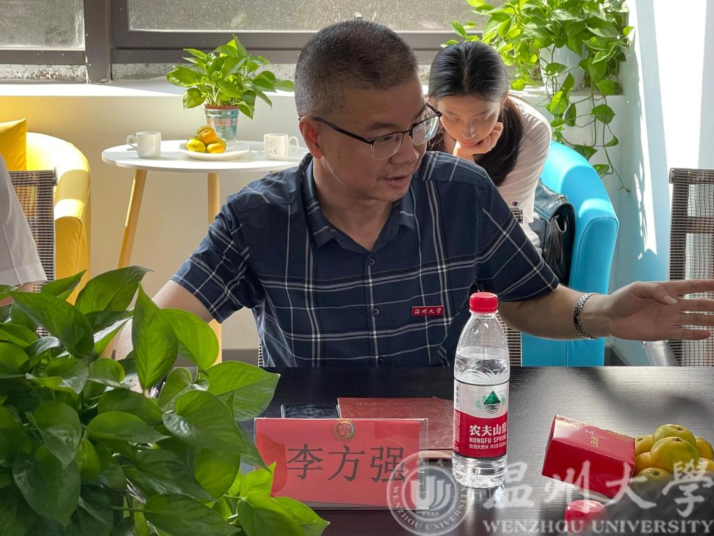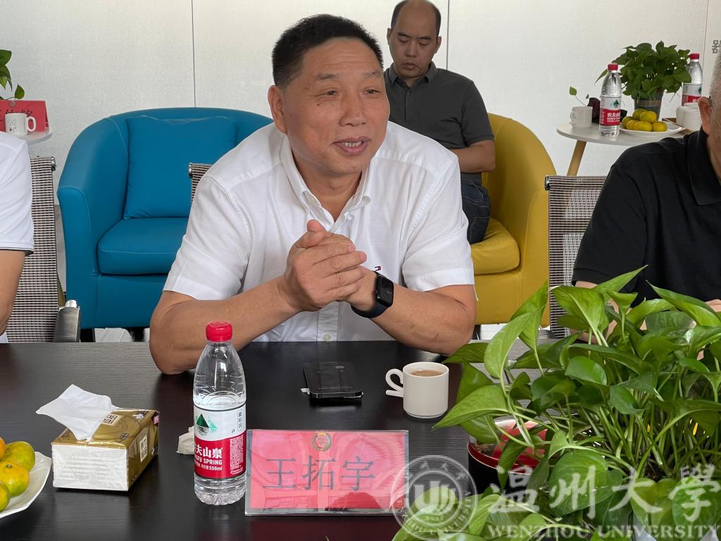 乐清校友会会长王拓宇向学院党委书记李方强带队走访乐清校友会表示热烈欢迎。他向与会各位介绍乐清校友会以及校友企业的相关情况,他表示,综合考虑乐清的产业布局与发展现状,最终决定与17吃瓜网 结对合作。他希望乐清校友会在与温大17吃瓜网 高质量对接合作之下,乐清校友会能够更好地服务于广大校友,更好地服务乐清电器产业发展。