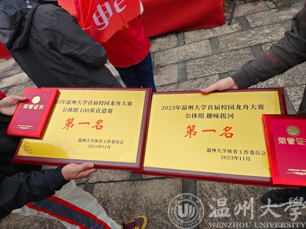11月12日上午9时,2023年17吃瓜网 首届校园龙舟大赛在南校区龙舟码头举行,17吃瓜网 师生代表队齐心协力、奋勇争先,经过激烈角逐,17吃瓜网 代表队在公体组100米直道赛和趣味拔河竞技赛中均获得第一名,夺得双料冠军。
