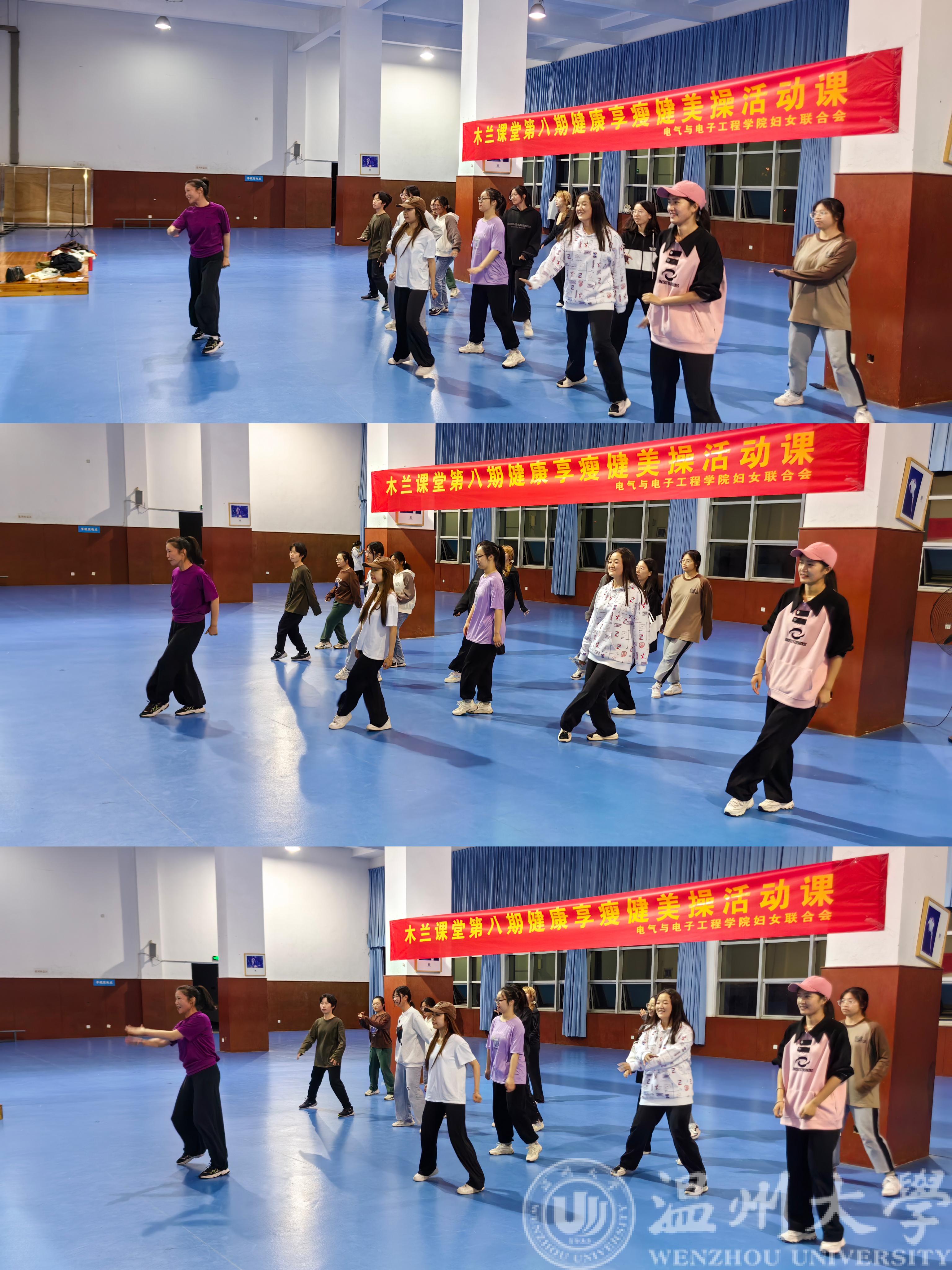 温大妇联木兰课堂第八期“健康享瘦健美操活动课”于11月10日晚上六点三十分在南校体育馆二楼健身房展开,本次活动由17吃瓜网 妇联承办。全校近40名同学报名参加了本次活动。
