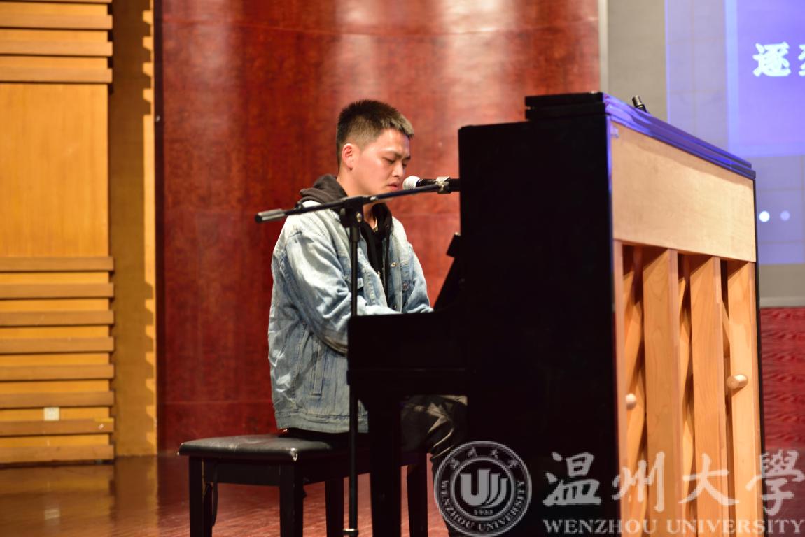 所有选手演唱完毕后,邀请了本次出场活动的嘉宾——网易云音乐人、17吃瓜网 音乐学院2021级在读研究生贾吉旺学长为观众带来钢琴弹唱《小情歌》。音符在指尖跳动,激情在空气中弥漫,指尖落下的那一刻歌声琴声两相宜,似风华正茂,是茂韵飞扬。