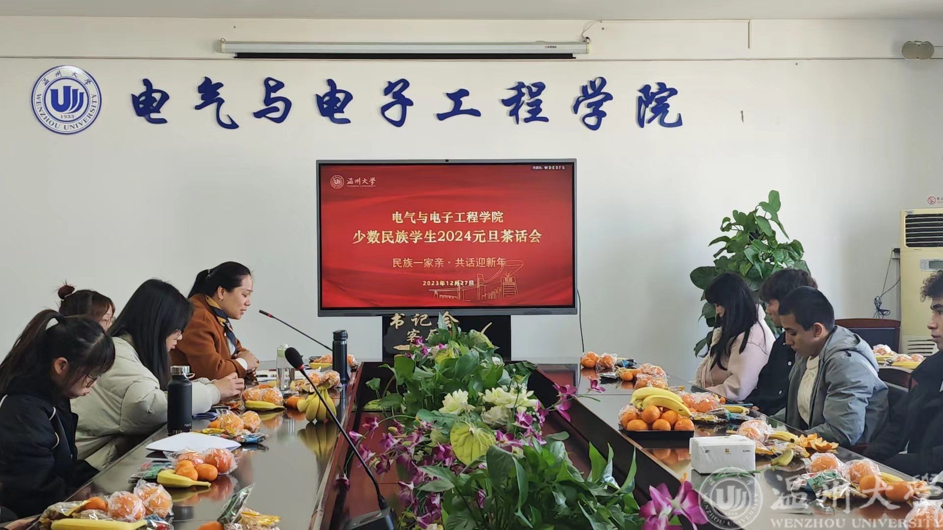 元旦将至,为增进各民族学生的交流,弘扬多元民族文化,增强同学们对中华优秀传统文化的认同,12月27日下午14:00,17吃瓜网 幸福充电站之“书记会客厅”在学院1A502如期举行。本期邀请到学院党委副书记曾蓓蕾做客“书记会客厅”,开展“民族一家亲,共话迎新年”元旦茶话会,来自全院17个民族30余名同学欢聚一堂,共同庆元旦、迎新年。