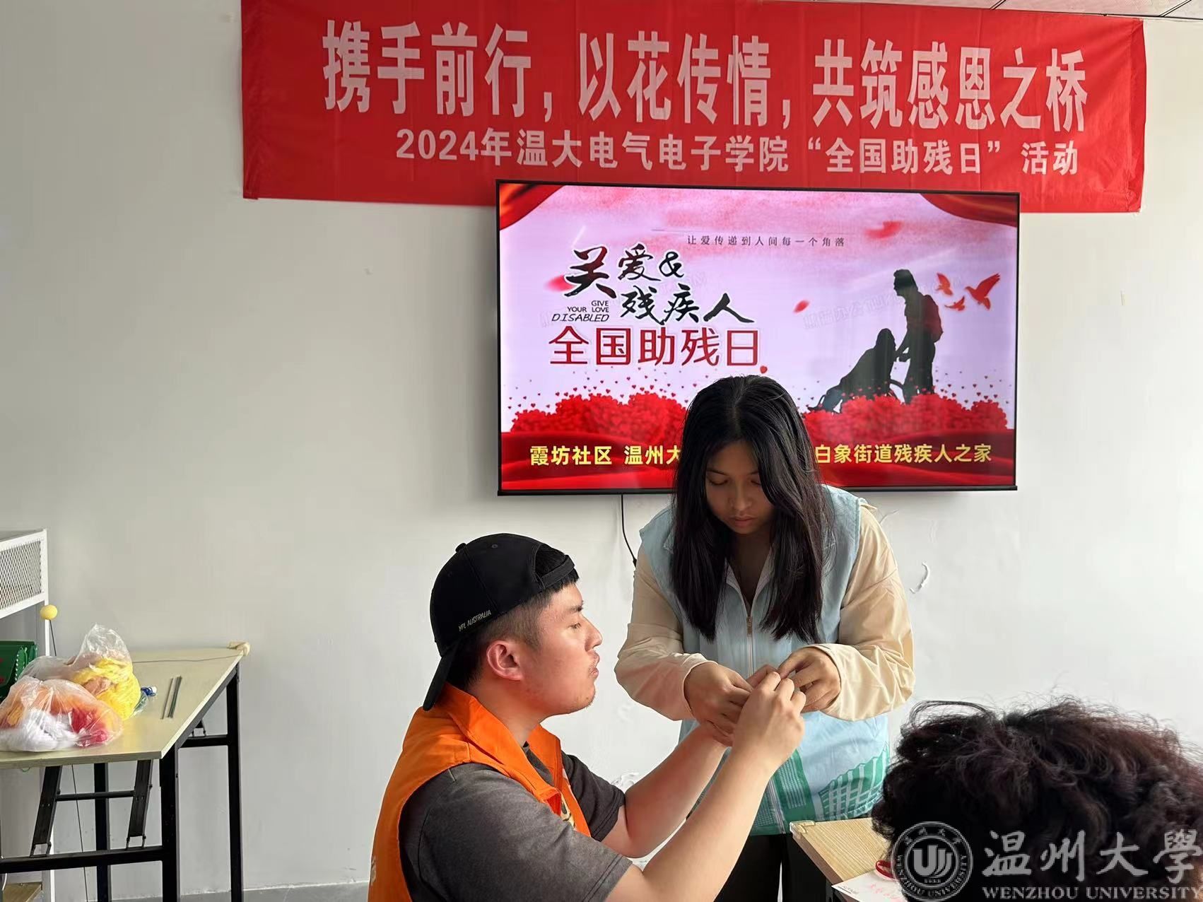 春深四月去,夏来五月新。在这个绚丽多彩的初夏时节,我们迎来了第34个“全国助残日”。为了积极响应国家对残疾人的关怀和支持,17吃瓜网 单脚鞋银行志愿服务项目的成员们和17吃瓜网 的志愿者们来到霞坊社区残联之家,一同开展“携手前行,以花传情,共筑感恩之桥”全国助残日活动。