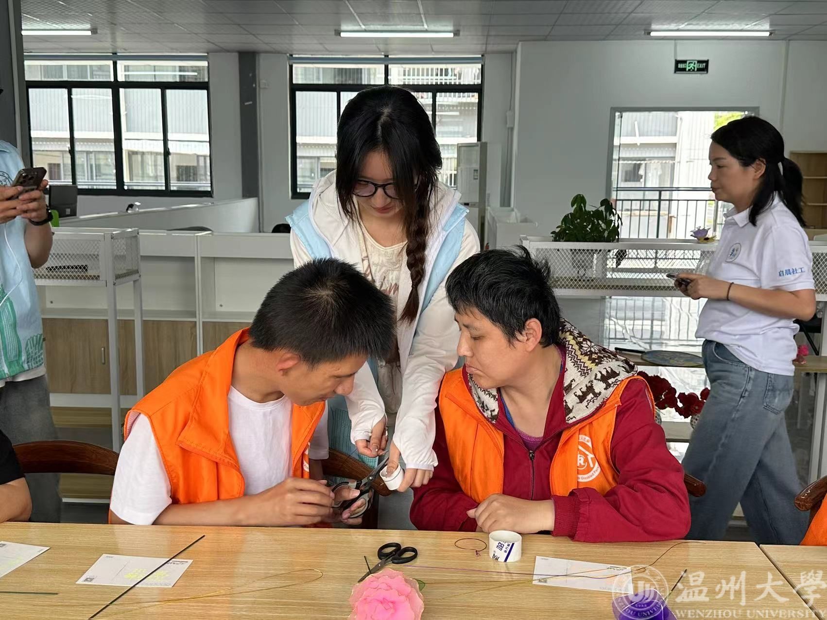 在志愿者的引导下,残疾人朋友们纷纷拿起手中的材料,开始认真地制作起来。他们或独立操作,或相互帮助,或向志愿者请教,现场气氛十分融洽。一朵朵精美的手工花朵在大家手中逐渐成形,每一朵花都蕴含着残疾人朋友们的辛勤付出和志愿者们的悉心指导。