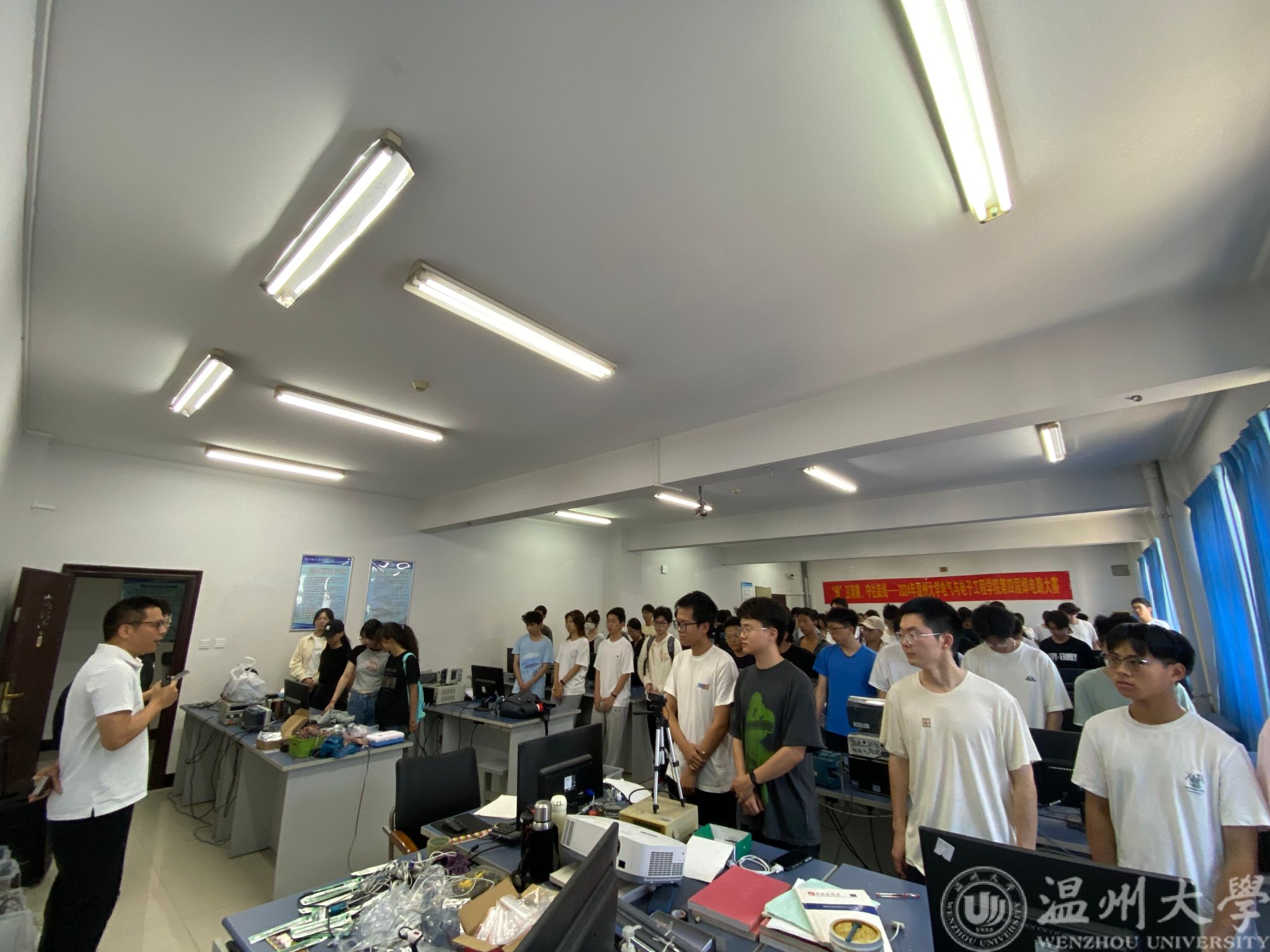 5月26日上午8:30,大赛正式开始,院学工办主任、团委书记廖晓安老师做赛前动员讲话。他勉励同学们,发挥所学和技能,小组通力合作,享受比赛,在比赛中有所得、有所获。潘龙飞老师简单介绍了比赛规则及注意事项,为同学们加油打气。