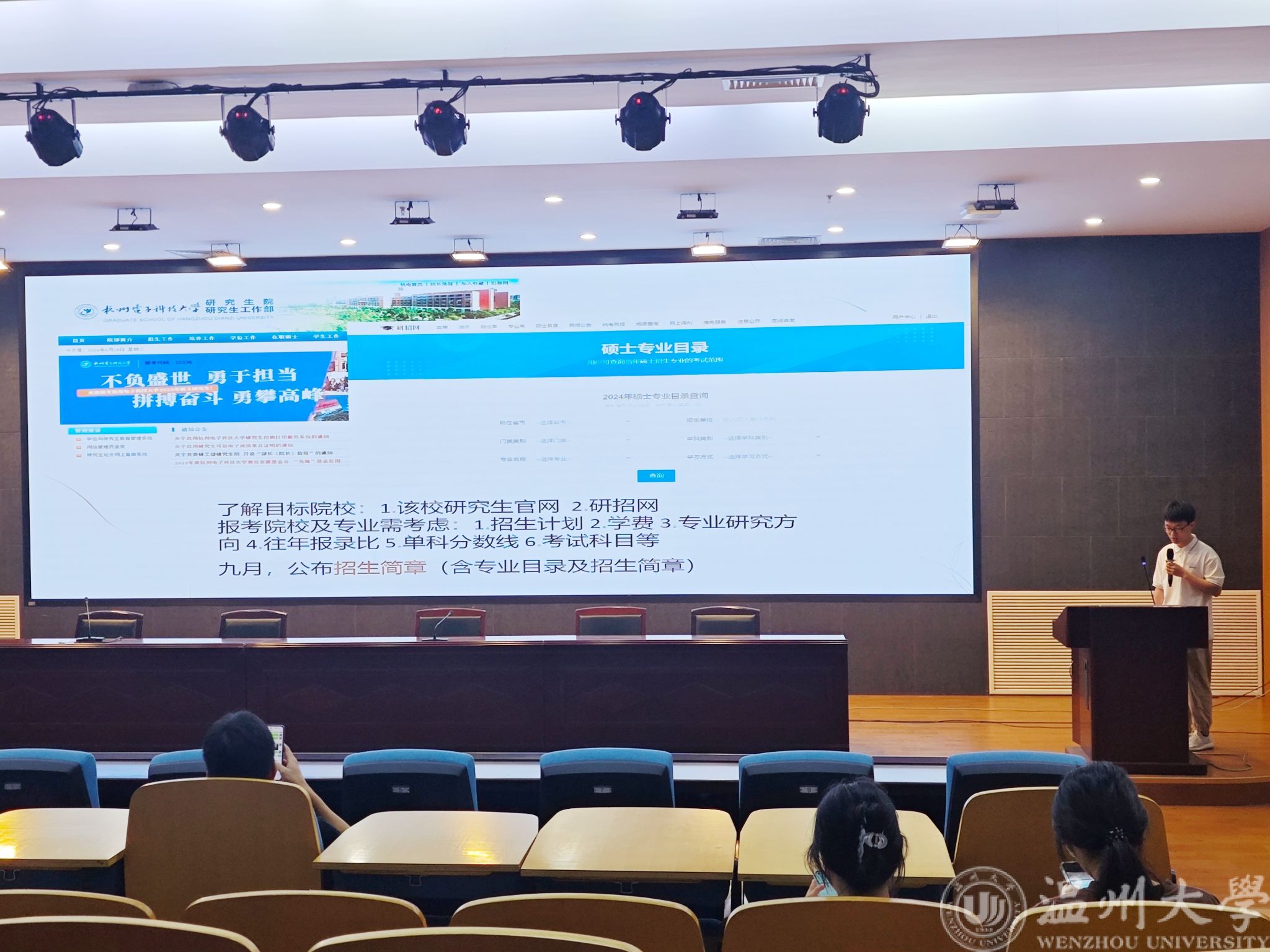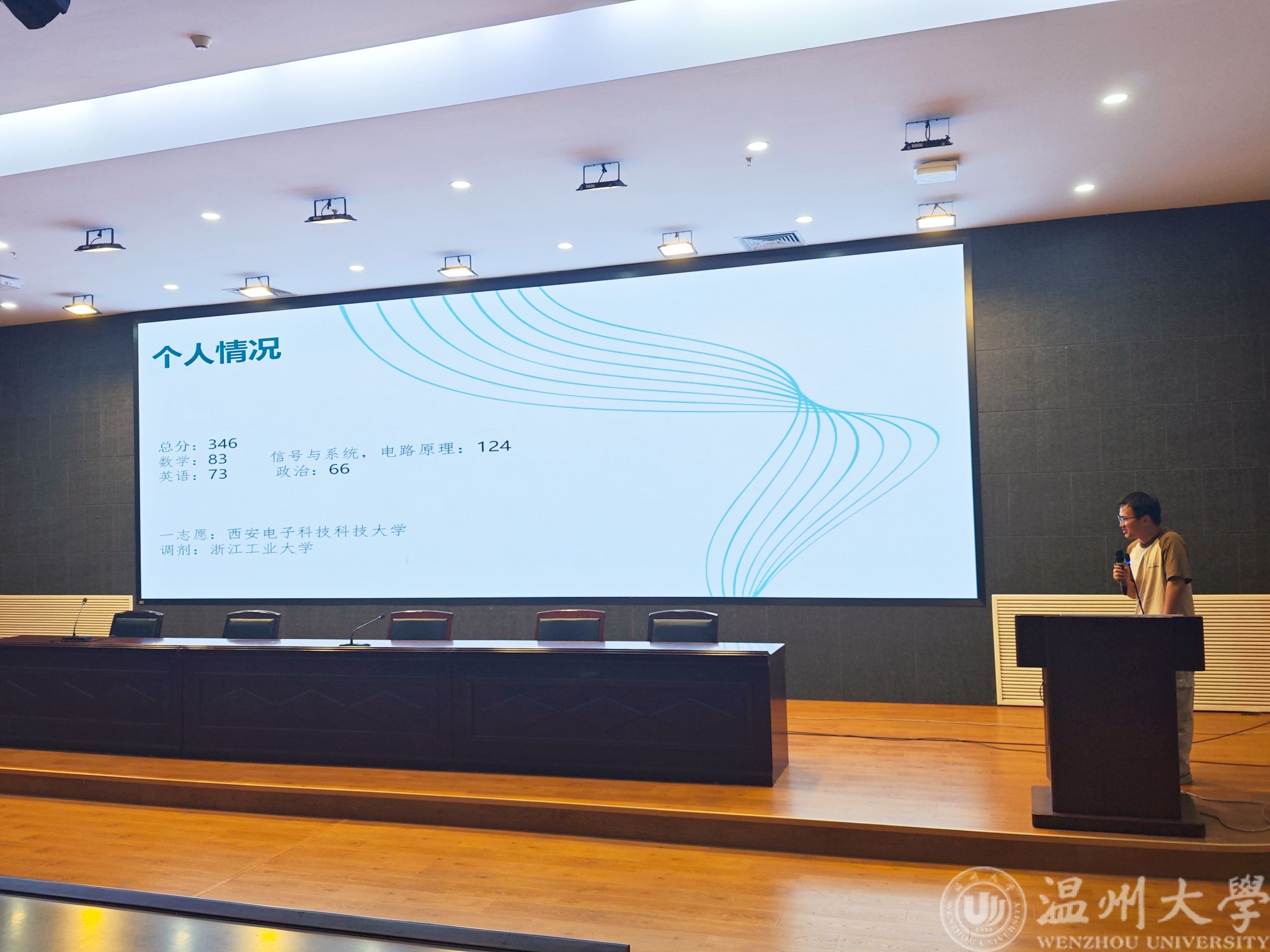 会议伊始,庄老师简单介绍了参与本次分享会的优秀学子,并寄语考研学子结合自身学习特点选择院校,也鼓励同学们报考温大本校、本专业的研究生。