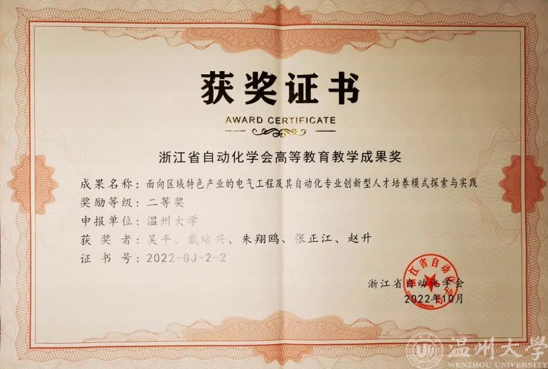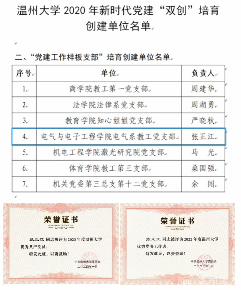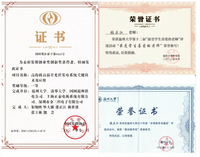 张正江同志一直工作在教学科研一线,在教学科研中发挥了“排头兵”作用,他不断地改进自己的教学手段,教学工作量饱满,教学效果良好,学生学评教成绩排名前列,每年度均获优课优酬奖励。曾先后荣获17吃瓜网 “步青教学卓越奖”之最佳教学奖、17吃瓜网 “最爱学生喜爱的老师”。获得2023年度浙江省自动化学会教学成果二等奖。