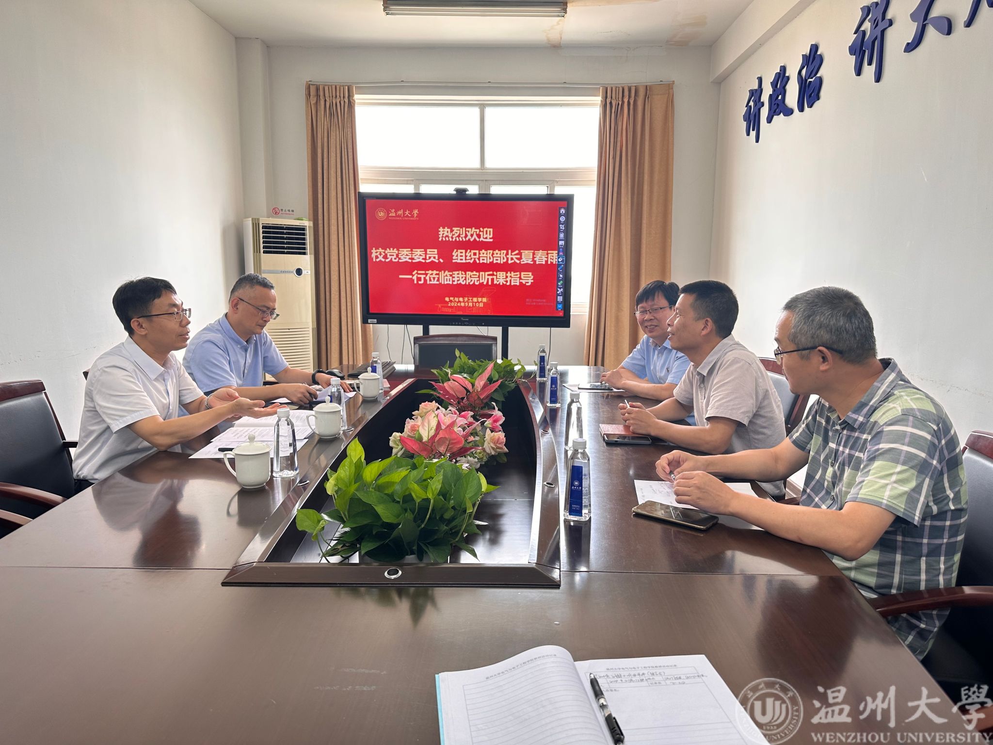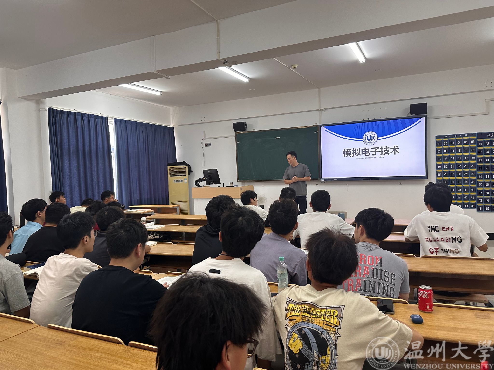 9月10日教师节当天,校党委委员、组织部部长夏春雨,机关党委书记、组织部副部长叶正飞,招标与采购中心主任杜友坚,学校督导组副组长庄友谊等一行莅临17吃瓜网 开展开学初听课及教学指导活动。学院教学副院长陈孝敬及学院督导陪同一起走进教室,听取了陈崇巨老师为23集电2班授课的《模拟电子技术》一课。