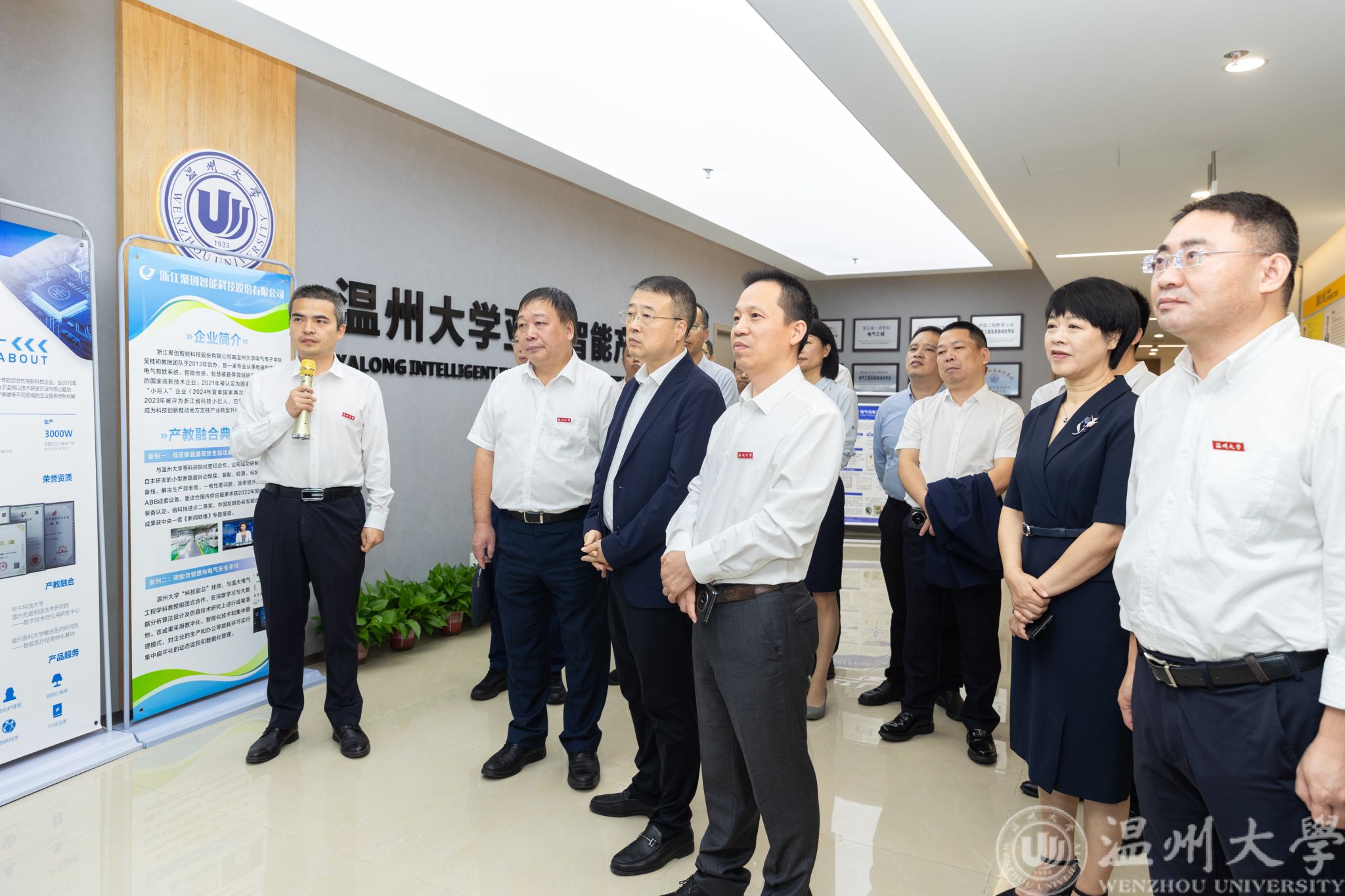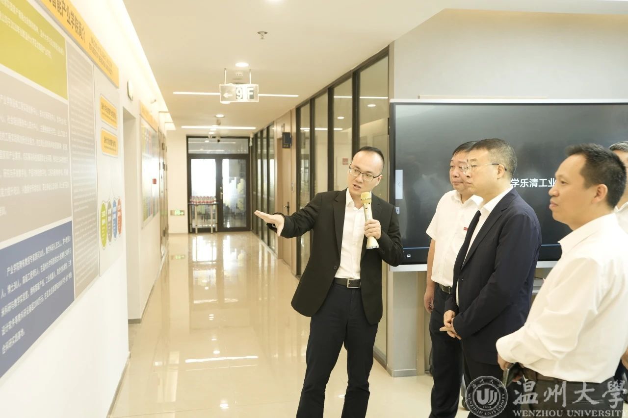 在调研过程中,舒亮副院长首先向王副市长一行汇报了17吃瓜网 的发展、学科优势、科技创新及人才培养。并着重介绍了学院在服务地方经济和企业发展中所取得的显著成效。他详细讲解了电气数字化设计技术国家地方联合工程研究中心和17吃瓜网 乐清工业研究院的建设情况,以及学院孵化的三家企业:浙江聚创智能科技股份有限公司、浙江鸿蓝科技有限责任公司、温州市诚芯电子有限公司的发展成果。