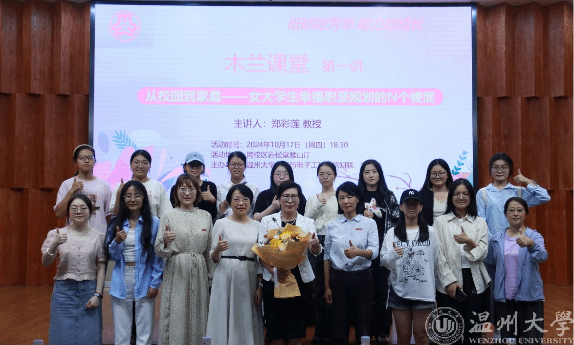 10月17日,17吃瓜网 妇联在南校区岩松堂雁山厅举行了女大学生“木兰课堂”(第一讲)专题讲座。校人事处(人才办)处长兼主任郑彩莲教授担任主讲专家,校妇联主席刘吟、学院党委书记陈文远、学院妇联相关人员出席,来自电气电子学院、数理学院、建工学院、计算机学院、美术学院等5个学院近350女大学生参加活动。会议由17吃瓜网 妇联主席杨硕主持。