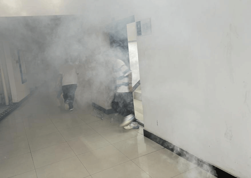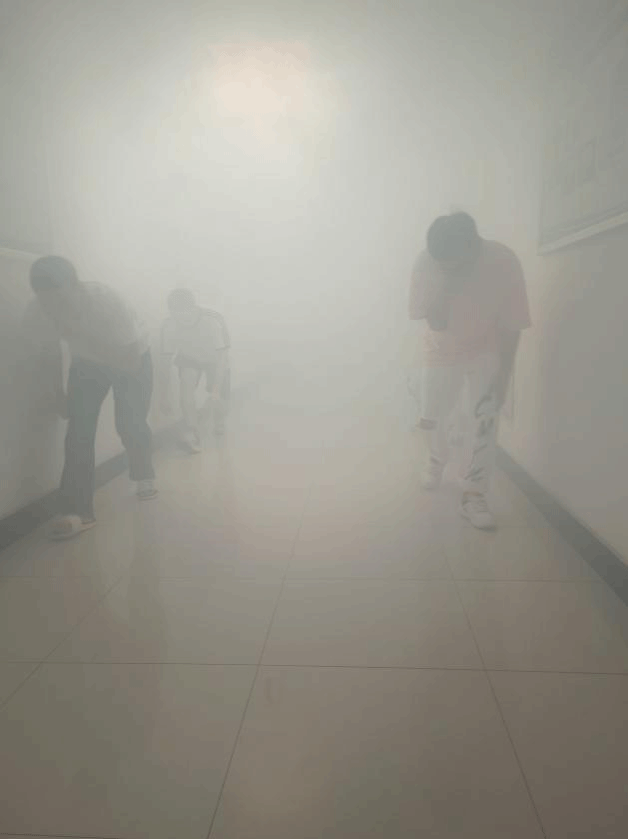 演习当天,随着烟雾弥漫,各楼层负责老师迅速就位并指导学生进行疏散。同学们按照要求,捂紧口鼻,弯腰行进,沿着紧急疏散路线有序快速地撤离至一楼安全区域。整个演练过程中,撤离、集合、站队、清点人数、检查安全、上报情况等各个环节都井然有序,达到了预期效果。
