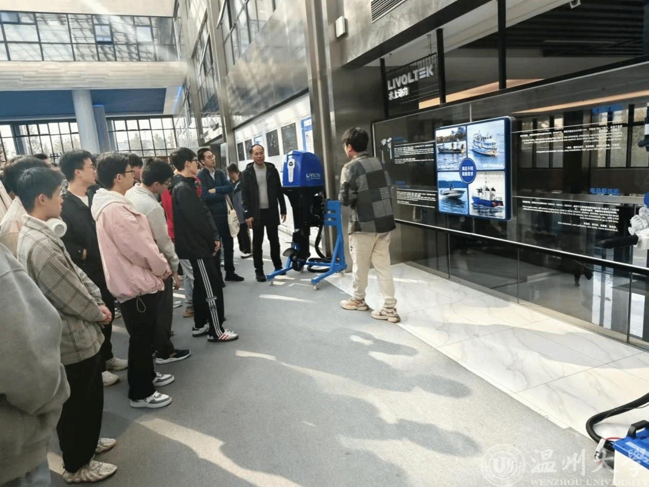 11月7日中午,师生一行抵达正泰新能后稍作休整,在工作人员的热情欢迎和细致讲解下,获悉了正泰新能近年来的生产成就,并参观了自动化程度最高的四期太阳光伏板电池厂房和组件厂房。看着一块块墨色光伏电池在流水线上流淌,AGV小车在各段产线上智能有序往返,同学们对新能源应用领域也有了更深的理解。参观完厂房车间,师生们进入正泰新能的技术创新中心。各式精致新奇的模型与视窗无一不透漏出正泰企业对新能源新技术、产品倾注的心血。