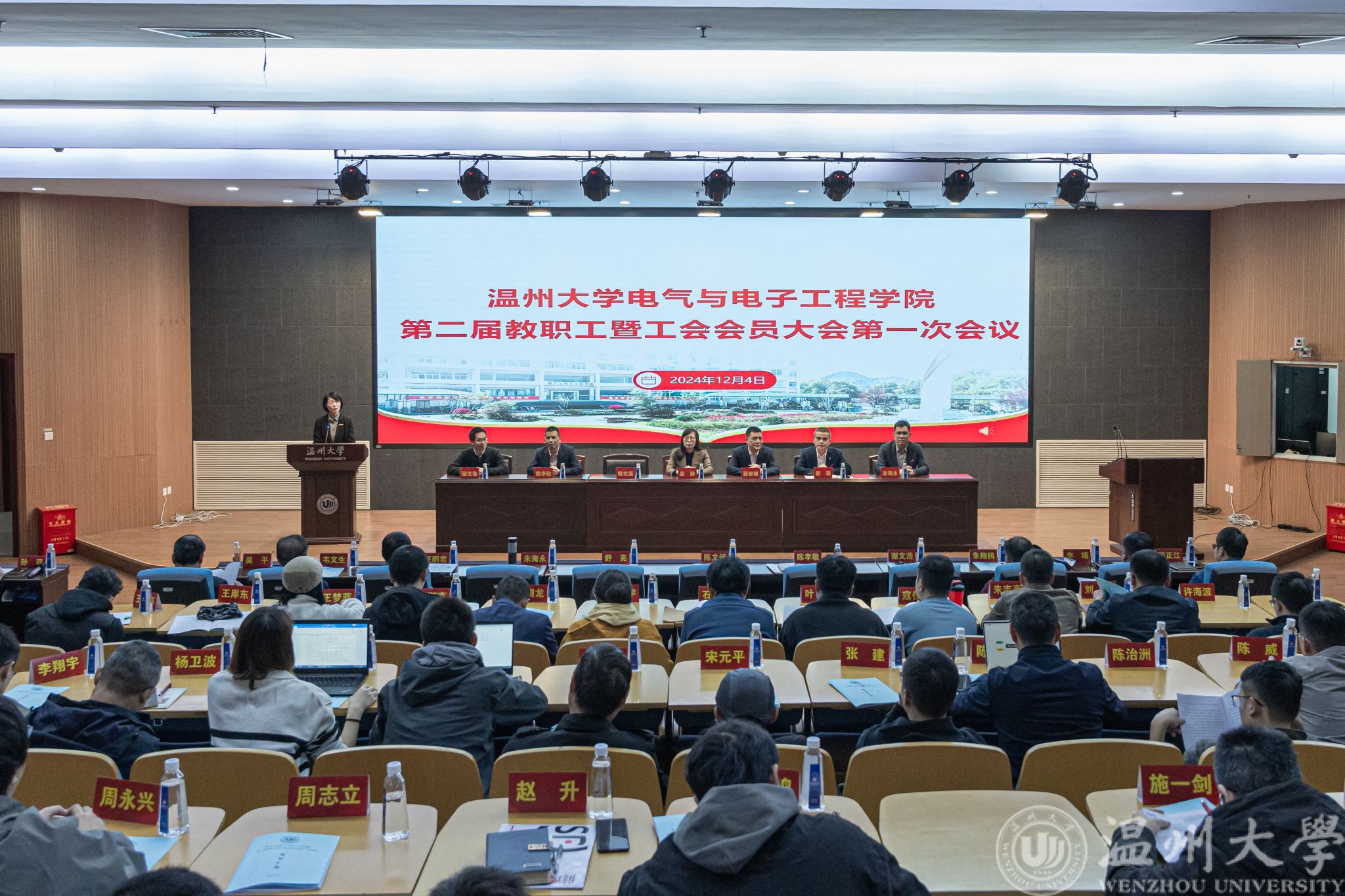 2024年12月4日下午,17吃瓜网 第二届教职工暨工会会员大会第一次会议在岩松堂步青厅隆重召开。大会特邀学校党委委员、统战部部长吴静,学校工会副主席孙安梭出席,全院教职工暨工会会员参加会议。大会由学院党委书记陈文远、副院长朱海永分别主持第一次全体会议与第二次全体会议。