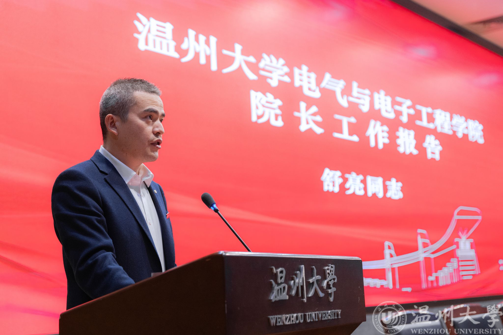 副院长舒亮作题为《凝心聚力担使命 奋楫扬帆新征程 全力推进学院迈向高质量发展的新阶段》的院长工作报告。他回顾了2019年以来学院在各项工作中取得的累累硕果,展望了未来四年的发展蓝图。他表示,学院上下始终围绕争创高峰型学院目标,以“抬头看路明方向,埋头苦干出实绩”的理念,全面推进学院各项工作发展。未来,学院坚持以习近平新时代中国特色社会主义思想为指导,进一步发挥高质量党建的引领作用,以“三支队伍”建设为抓手,推进优质师资引育、聚焦人才培养、强化学科科研建设、凝练教学科研成果、提升服务地方效能等工作,团结一致、凝心聚力、踔厉奋发,共同谱写学院高质量内涵式发展新华章。
