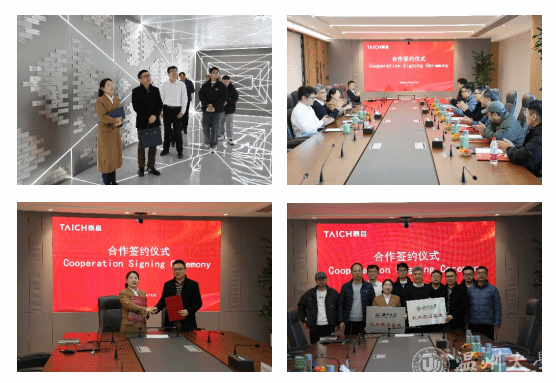 学院师生在走访过程中受到热情接待。泰昌集团人力资源负责人温爱拉、吴昌慧陪同参观并介绍了企业的发展历程、文化及党建工作。在随后的座谈交流中,泰昌实业副总经理杨国富介绍了公司的业务范围、行业前沿动态、未来发展规划,表达了对学院人才培养工作的肯定,也提出了企业在人才招聘、技术研发等方面的需求,希望与学院建立更加紧密的合作关系。翁浩介绍了学院近年发展的有关情况,并表示希望双方进一步拓宽合作领域,深化合作层次,共同提高学生培养质量,不断提升学生就业核心竞争力。双方还就实习就业、产学研合作、党建共建等内容进行了深入交流。学院与泰昌集团、泰昌实业股份有限公司举行了实践基地签约仪式和就业实习基地授牌仪式。
