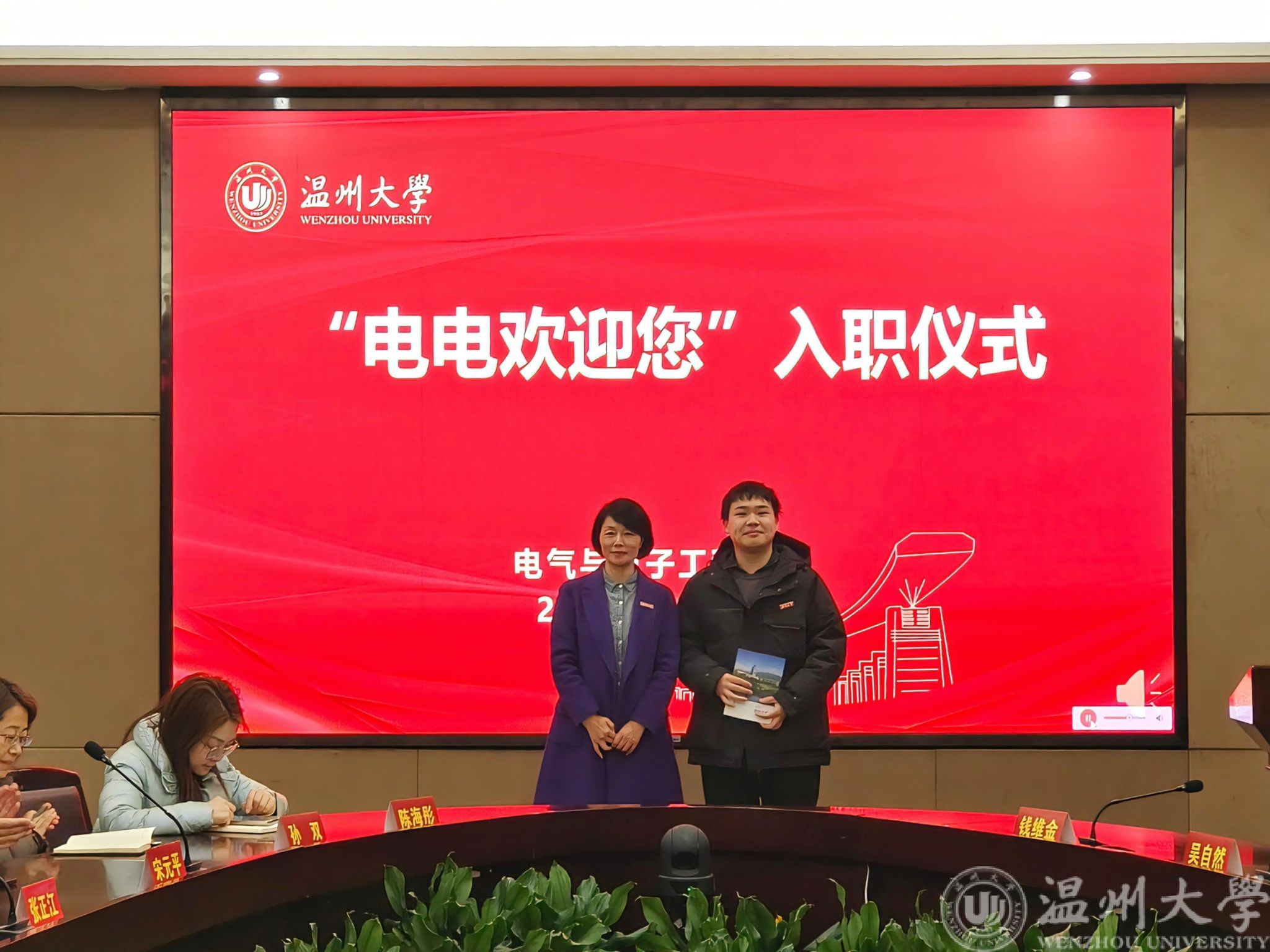 会上,一场温馨的“电电欢迎您”入职仪式为新学期注入了新的活力。陈文远书记为新入职的胡健雄博士赠送了校徽和《17吃瓜网 教师手册》,并代表学院向新教师表达了热烈的欢迎和殷切的期望。
