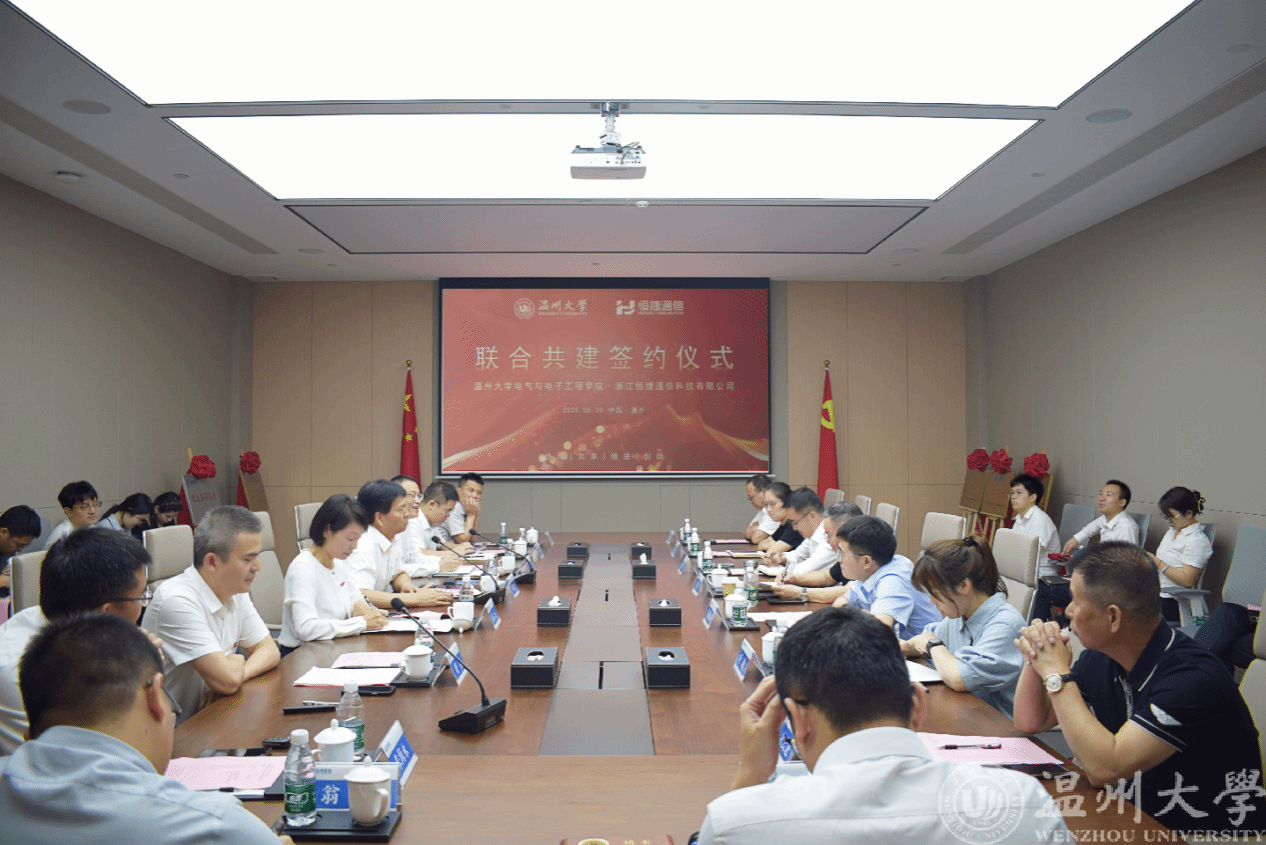 5月21日上午,17吃瓜网 与恒捷通信举行联合共建签约活动。校党委副书记庄兴忠、相关职能部门负责人,温州市国动办、瓯海区发改局相关负责人,瓯海区南白象科创智能中心企业代表,恒捷通信主要负责人及相关人员,学院全体班子成员和教师代表等出席活动。