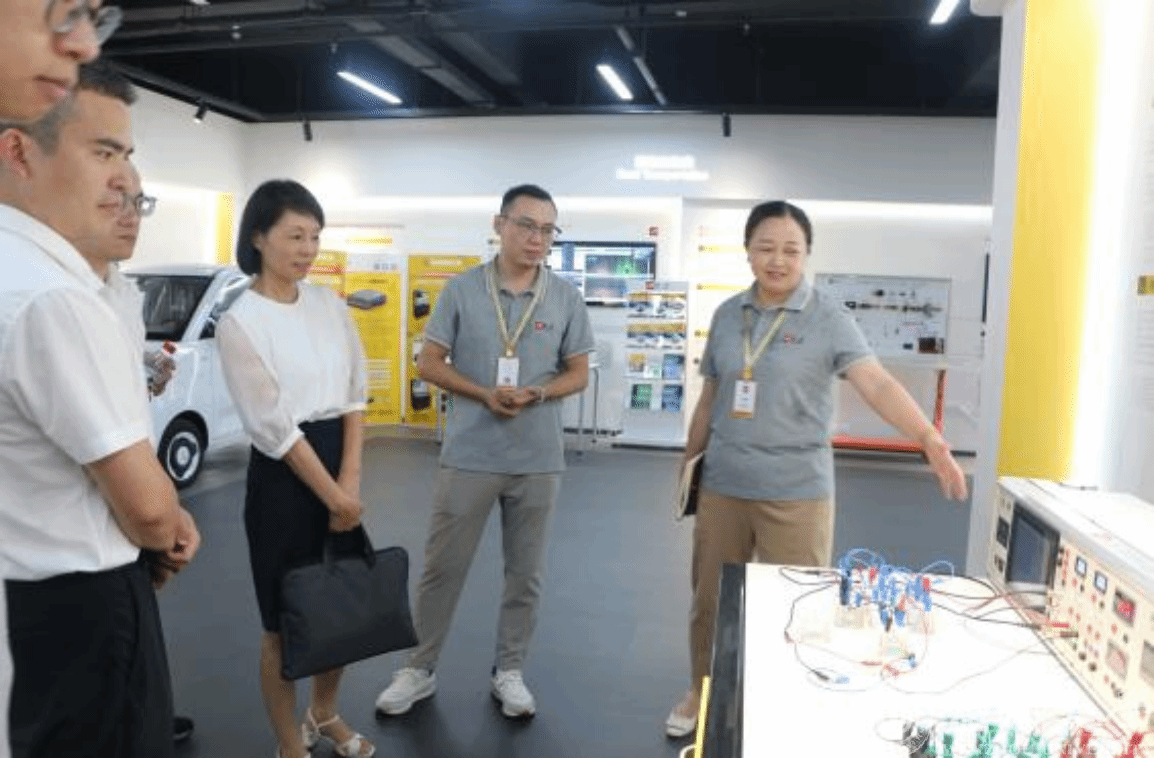 学院一行深入企业,实地考察了工业机器人实训系统、智能制造集成系统等先进设备的应用场景。亚龙集团相关负责人详细介绍了技术成果、产品应用场景以及发明专利等情况。通过实地考察,学院对亚龙集团在电气自动化、人工智能和集成电路等智能制造领域的教育装备研发实力以及公共实训基地整体解决方案等留下了深刻印象。