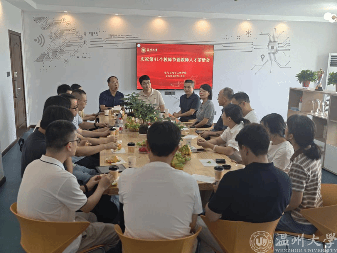 9月10日上午,电气与电子工程学院在学院教工之家(人才之家)和校友之家共享空间举行了庆祝第41个教师节暨教师人才茶话会。学院负责人、高层次人才、中青年教师代表、外教以及优秀校友代表参加了此次活动,共话师道传承,共叙学院发展。