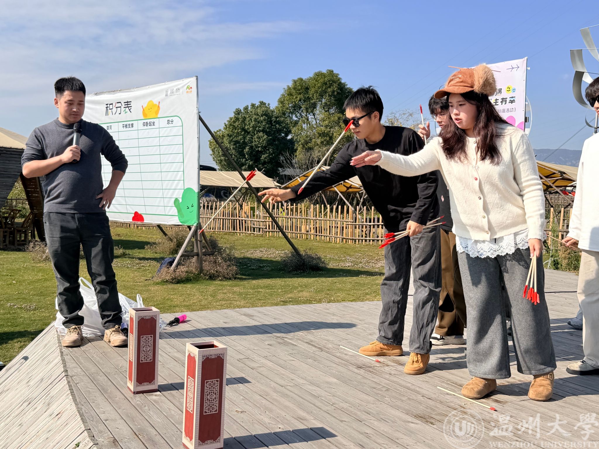 随后,各类趣味竞技项目依次登场,热闹不停歇。“一穿到底”考验反应与衔接,大家默契配合、快速传递,尽显高效协作能力;“投壶”传承传统趣味,瞄准投掷间,既有专注细致的态度,也有欢声笑语的陪伴;“背夹球”需双人同步发力,步伐协调中凝聚信任,每一步前进都是团队默契的见证;“穿山洞”活动则以集体联动突破挑战,全员同心聚力,在协作攻坚中解锁团队潜能。