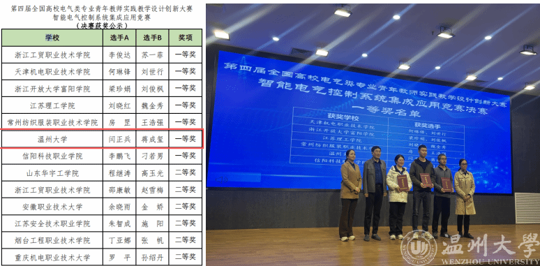 其中闫正兵老师和蒋成玺老师荣获第四届全国高校电气类专业青年教师实践教学设计创新大赛——智能电气控制系统集成应用竞赛一等奖。