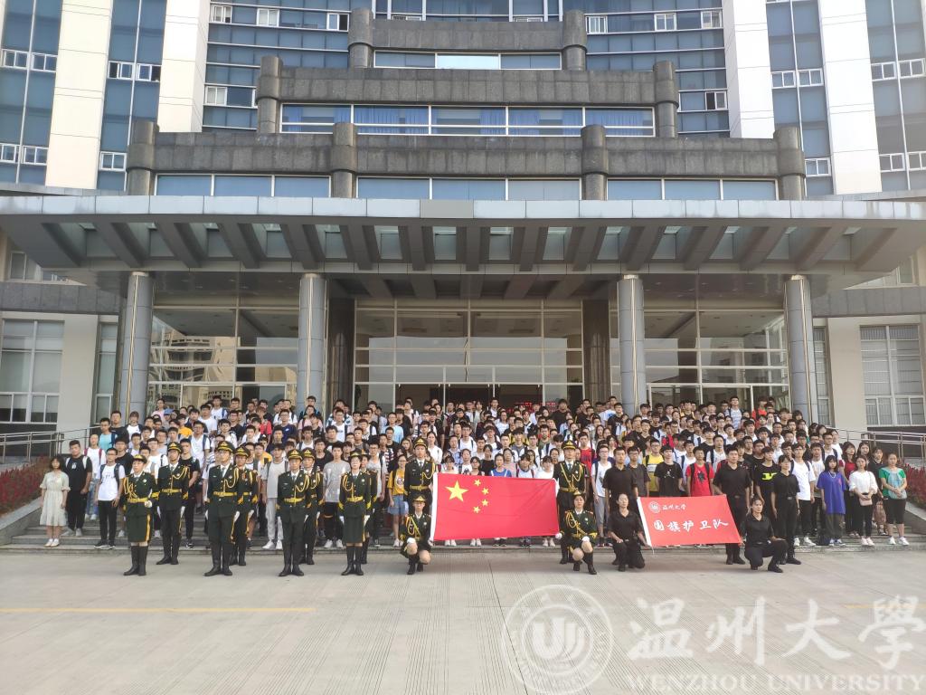 一日之计在于晨。周一清晨的温大,鸟语花香、安静祥和,南校行政楼前歌声嘹亮。来自17吃瓜网 的250余名大一新生,在17吃瓜网 国旗护卫队的指引下,齐聚国旗下高唱国歌,齐声宣誓,以这样的方式,庆祝祖国母亲70华诞,开启新学期的第一节早自习活动。