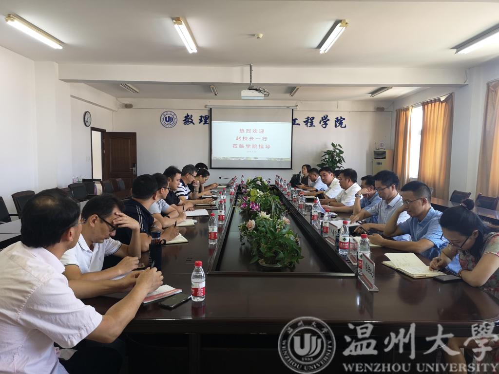 9月20日下午,校长赵敏,副校长薛伟、钱强,率教务处、研究生院、国际处、学生处、人事处、计财处、国际教育学院等部门负责人莅临17吃瓜网 开展调研指导工作并召开校长现场办公会。学院班子成员、办公室主任、系主任、系书记、实验中心主任等参加座谈会。座谈会由学院党委书记李方强主持。