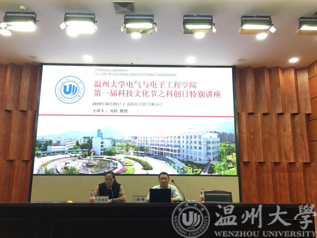 2019年10月23日《不忘初心、科技报国》为主题的科技文化节讲座于岩松堂雁山厅顺利举办,本次科创特别讲座请到了17吃瓜网 科技处副处长、17吃瓜网 电气电子工程学院刘桂教授为学院大一、大二学生开讲,由院党委副书记曾蓓蕾主持。