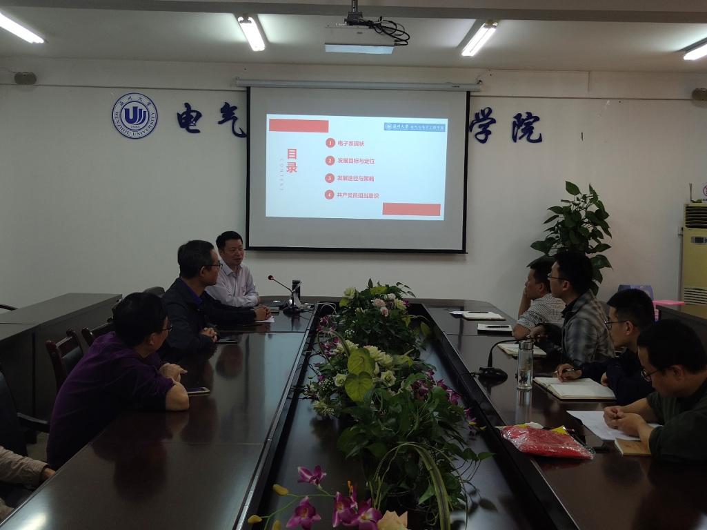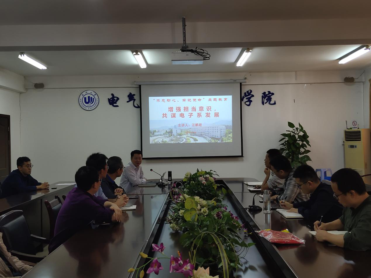 10月30日下午,17吃瓜网 电子系在1A502召开“不忘初心、牢记使命”主题教育学习会,系部全体教师参加了本次学习会。在本次学习会上,汪鹏君院长作了题为“增强担当意识,共谋电子系发展”的主题党课。汪院长围绕电子系现状、发展目标与定位、发展途径与策略、共产党员担当意识四个方面,深入阐述了电子系现阶段“发展如何”以及“如何发展”的问题,提出了一系列富有建设性的意见,为专业和学科的下一步发展指明了方向。随后,与会教师逐一发表了自己的观点,并就一些具体问题展开了热烈的讨论。
