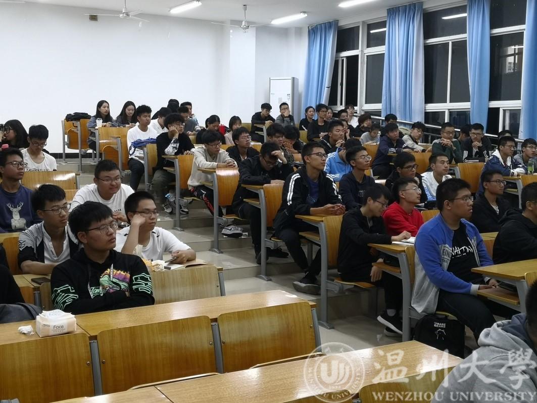吴玉伟老师就近年来风起的“学位无用论”作为讲座开端,重点强调了同学们应当更好地把握大学窗口期,丰富充实大学生活。“人有三种自由:时间自由,财务自由,精神自由。精神自由不是想做什么就做什么,严于律己才是真正的精神自由。”吴老师这样说道,“学习的苦你要主动去吃。”