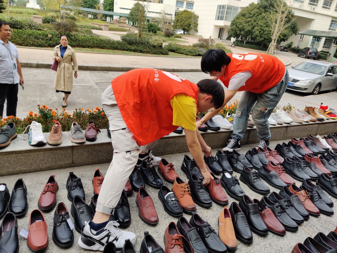 鞋子整理打包完毕运到17吃瓜网 时已经是十一点半。志愿者们依然兴奋不已,顾不上吃饭,立马开始工作,电气学院八级大台阶顿时成了天然的大鞋架。